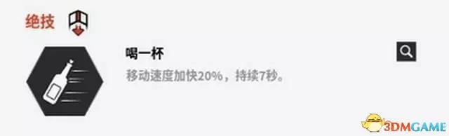主動技能“喝一杯”則是中規中矩的移速增加,通常僅作為轉點時使用。