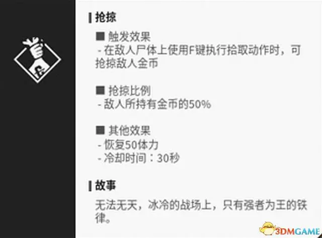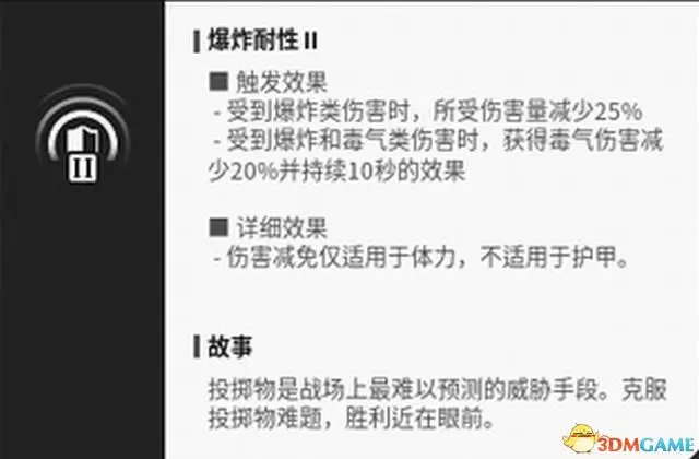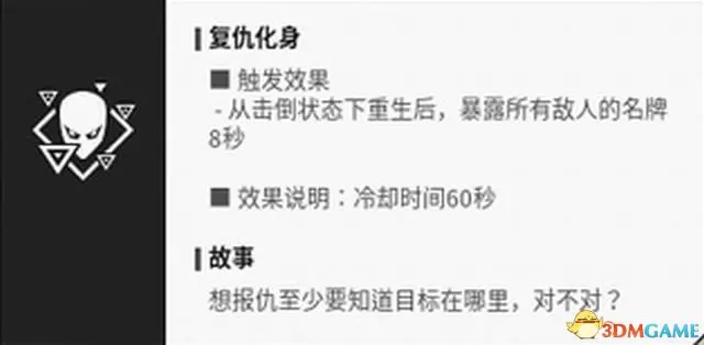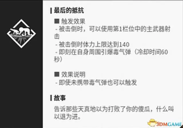 “最後的抵抗”能夠在倒地時釋放毒氣彈,阻礙敵方視野。