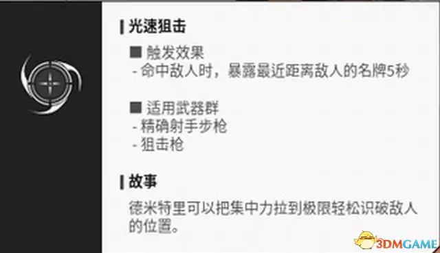 “光速狙擊”則是德米特裡兼顧偵查手的技能。