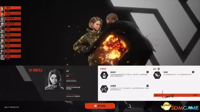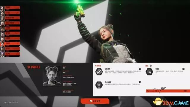 主動技能為“轉槍”,使用後可在短時間內無視敵方的掃描,在被暴露時使用技能也能清除暴露狀態。
