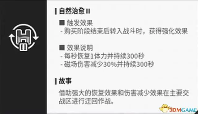 覺醒劑的效果為“使用後20秒內體力自動恢復,磁場傷害加強並獲得5%的移動速度提升”。