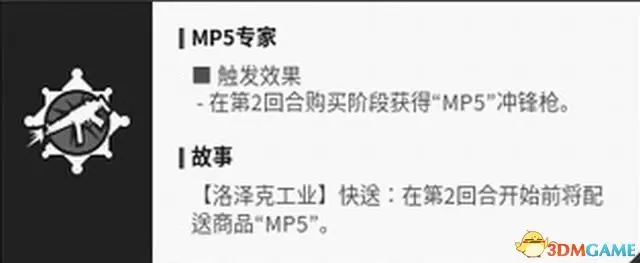 【備註】使用MP5衝鋒槍時能快速裝填。