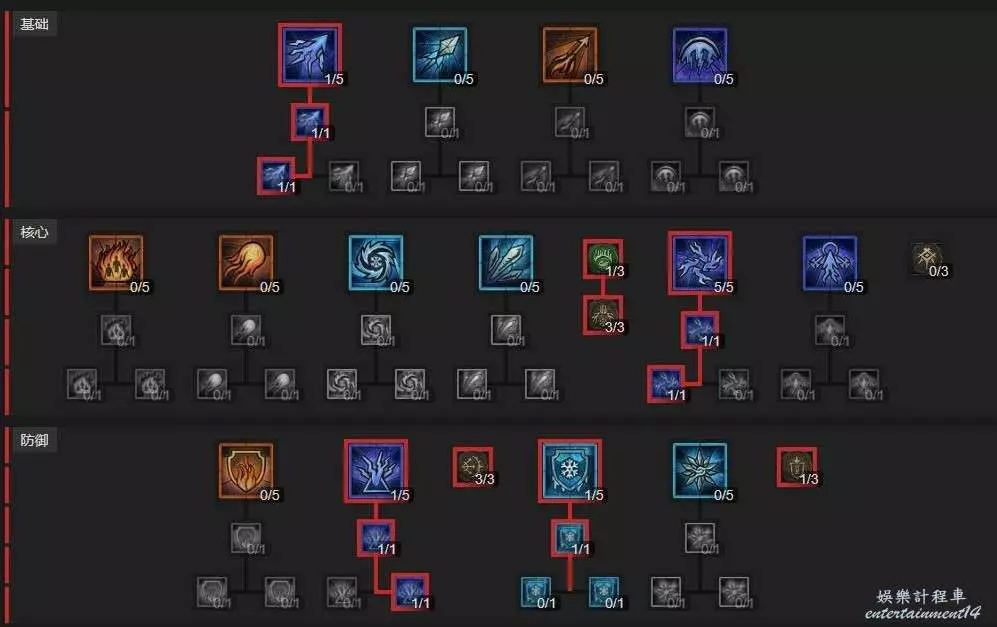 寒冰屏障1級+1級觸發30%回藍,如果後期項鍊有+3防禦技能,可以多一個技能點出下一層的受傷15%冰凍敵人。