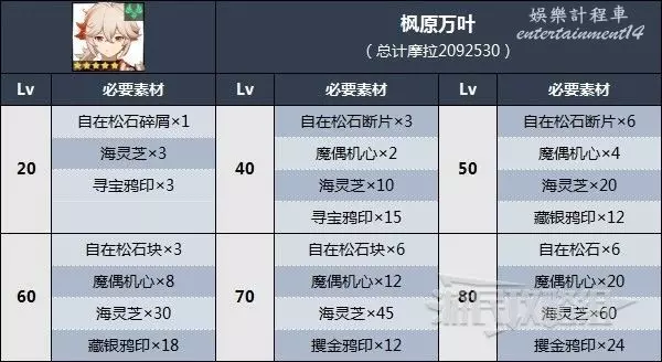 楓原萬葉突破材料一覽