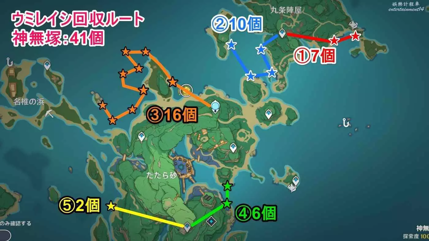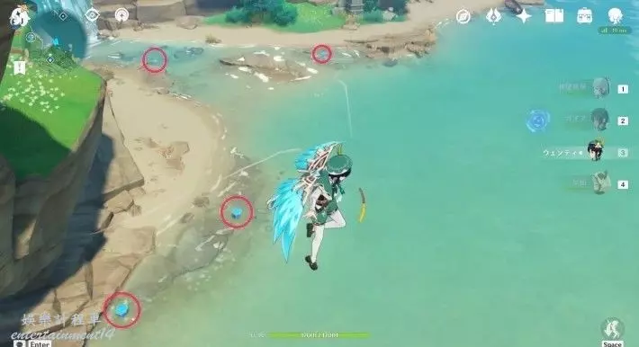 1.從神裡屋敷傳送點飛到南邊下方海岸可以看到5個。