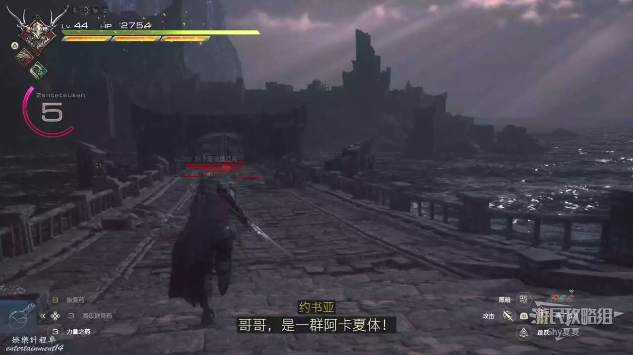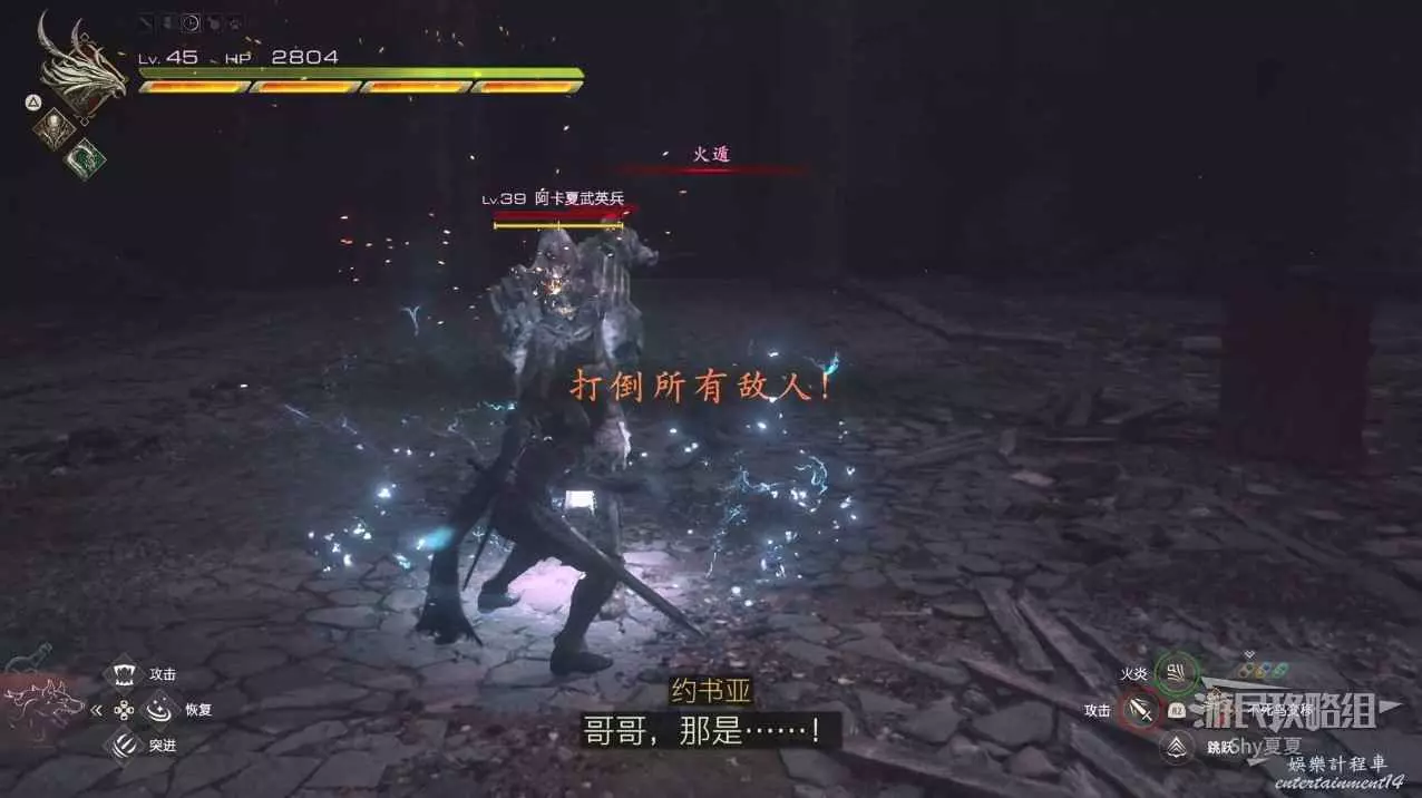 劇情結束後我們就需要操作約書亞了,使用約書亞是沒有收集品的,沿著道路一直走,一路擊敗敵人。約書亞的技能傷害很高,但是後搖很大,儘量用於補傷害。但是這一段屬於劇情,沒啥難度,不用刻意研究打法。