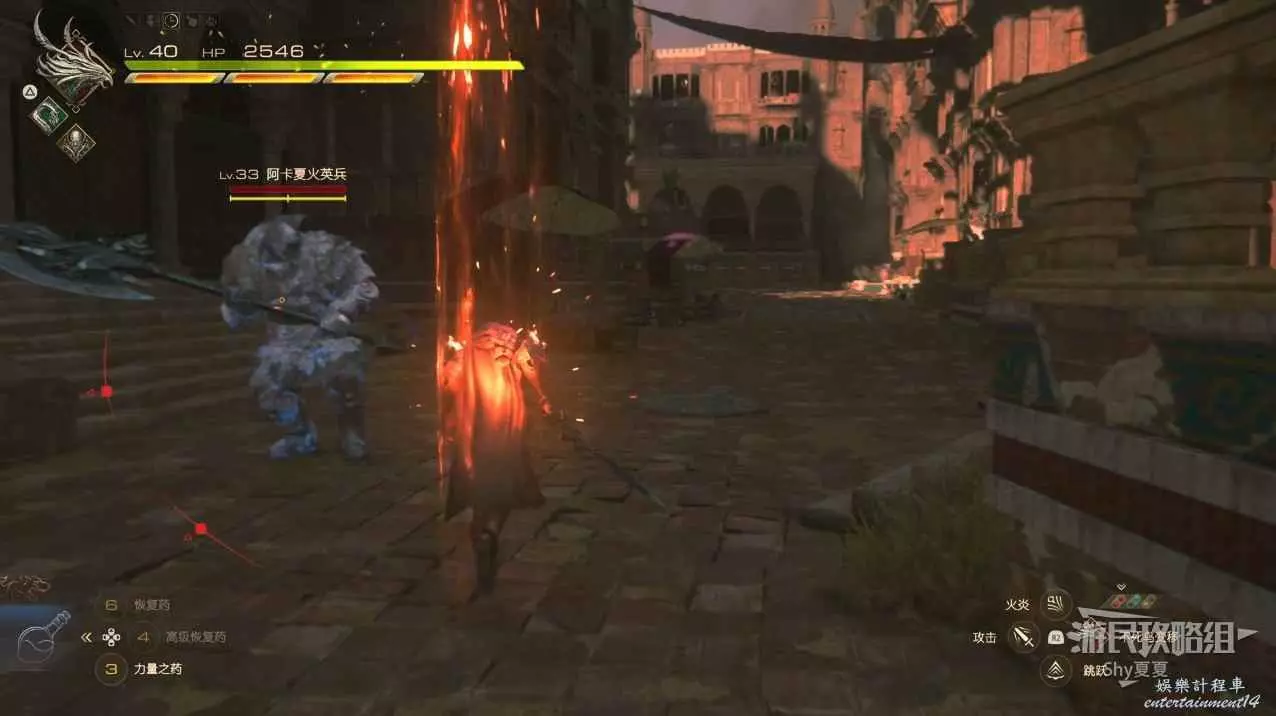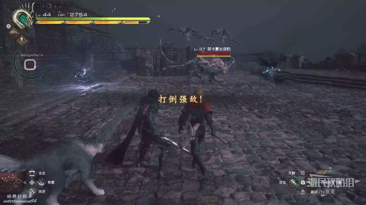 從城堡出來擊敗一些敵人,敵人是阿卡夏長須豹,擊敗之後打開它後面的門繼續前進。