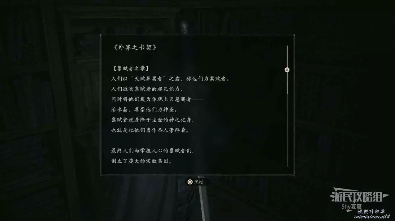 進入建築內,上樓梯,右轉有一個小屋子,屋子裡有箱子,打開獲得【光之玉響“追隨體”】。