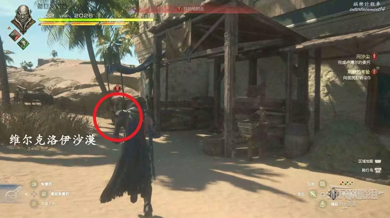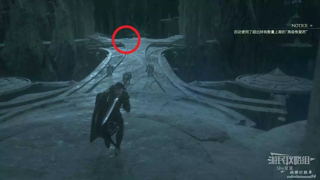 來到不死鳥庭院後,也不要先去謁見廳,建築邊上可以拾取【恢復藥】。