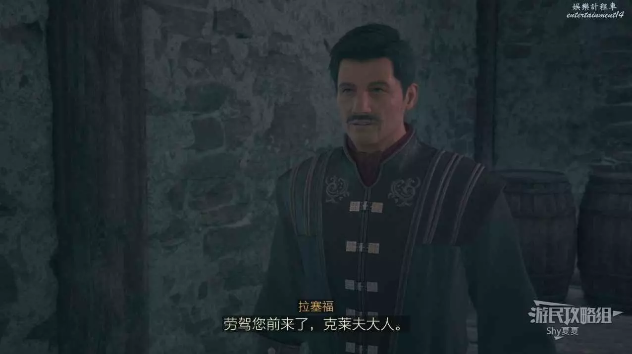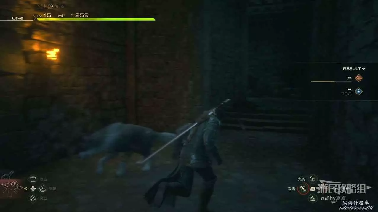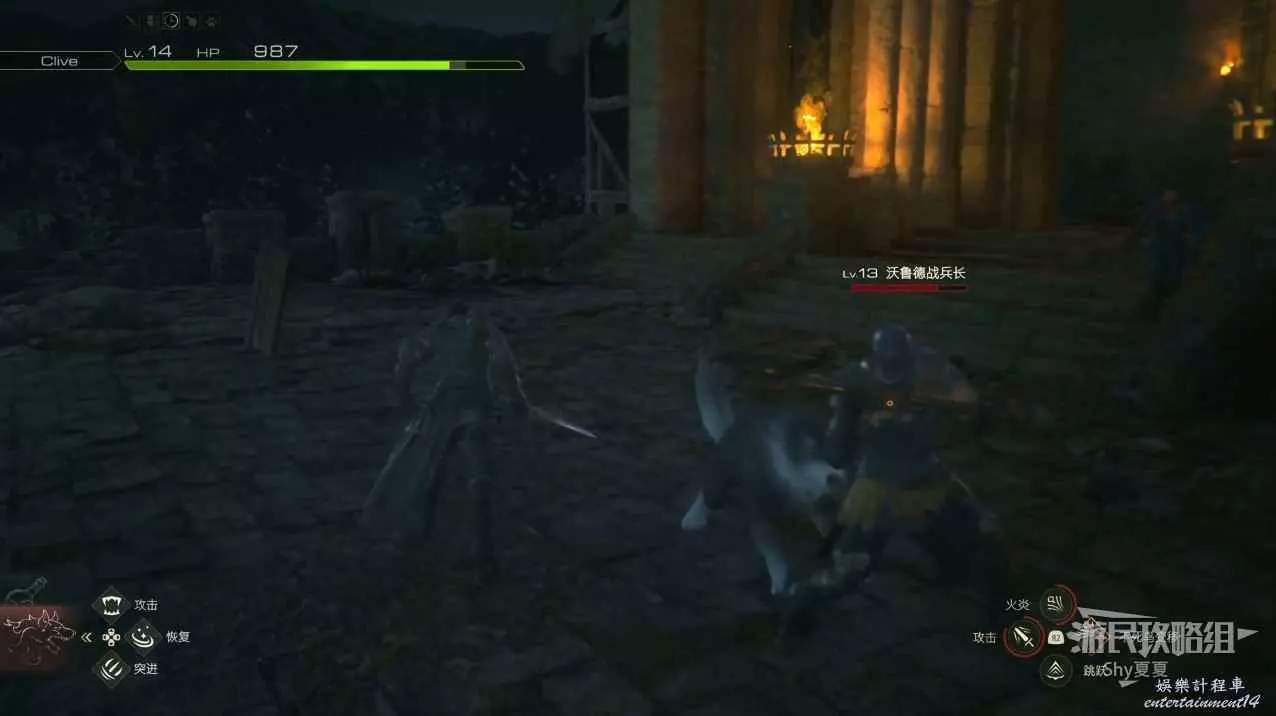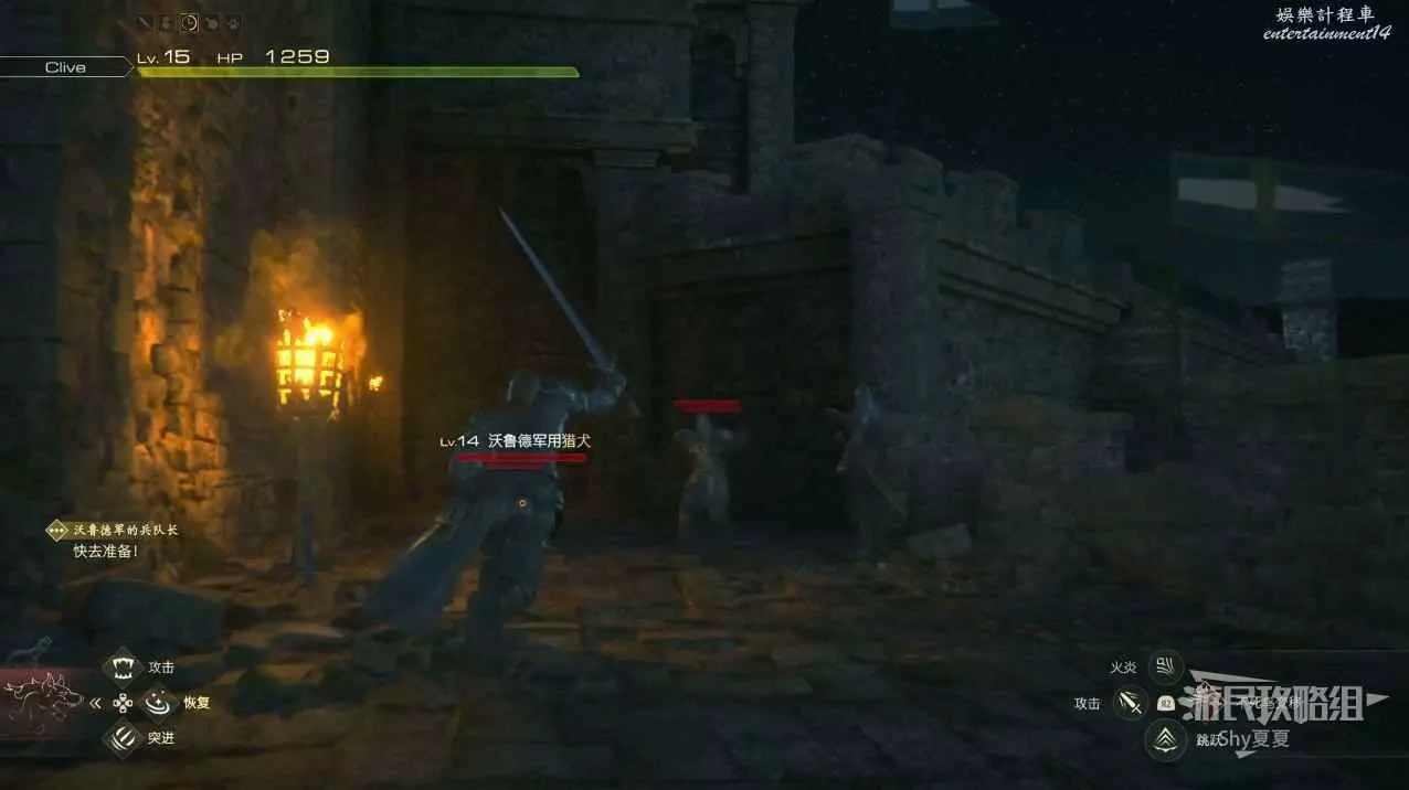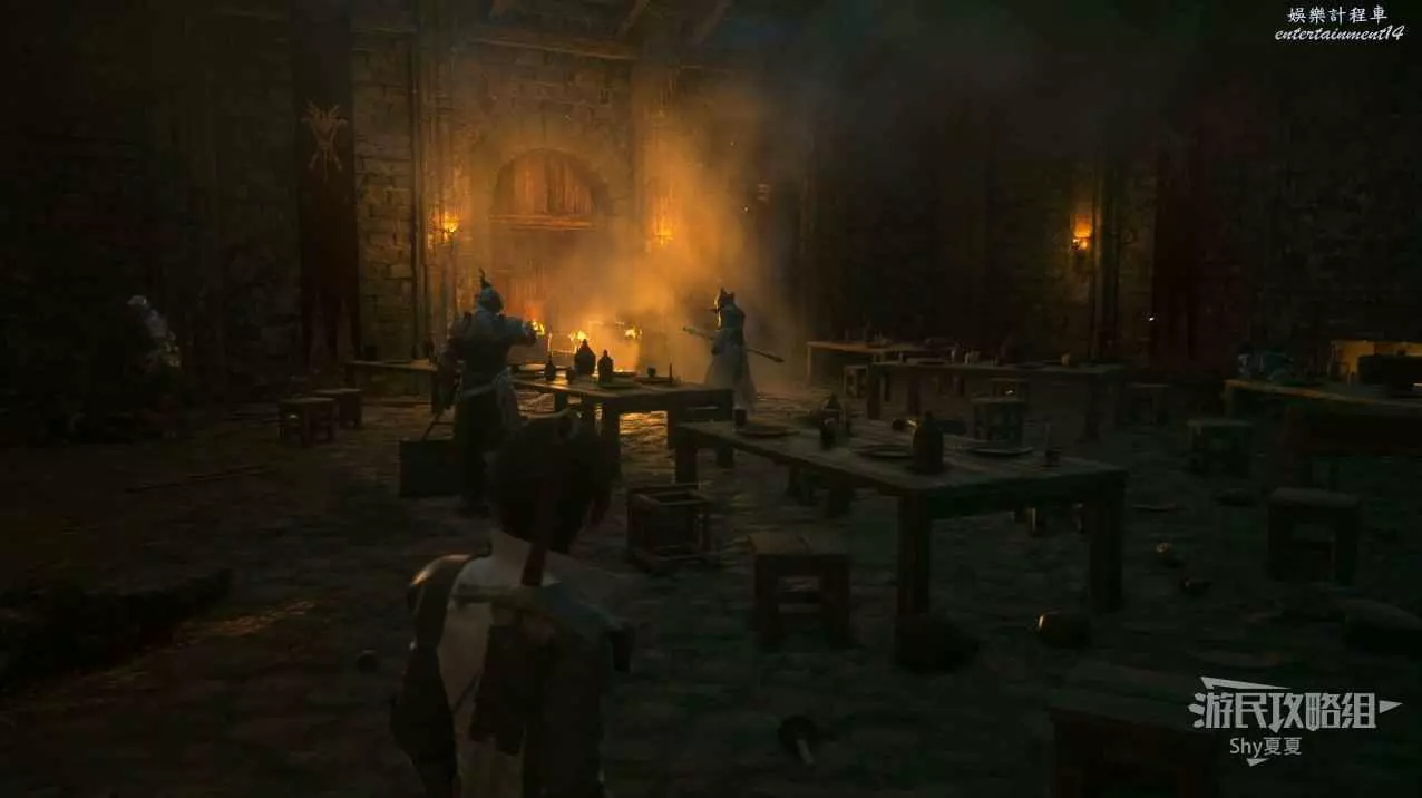 再次操作克萊夫後,來到食堂進入戰鬥,敵人難度不高,都是雜兵,優先擊殺順序:占星術師>軍團兵>上尉。