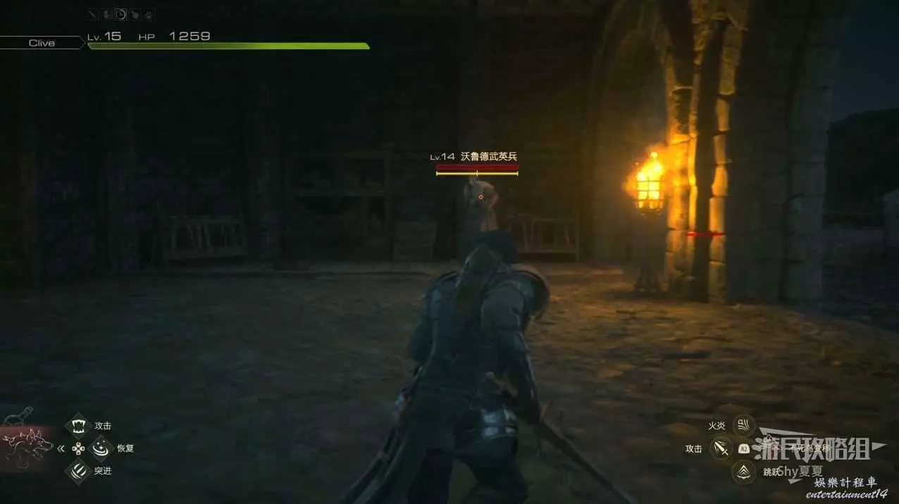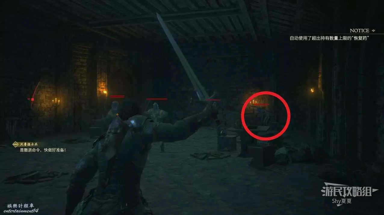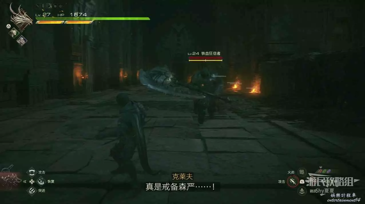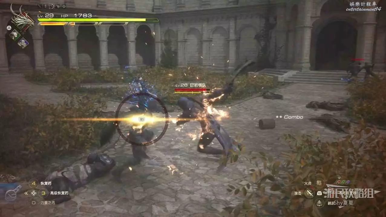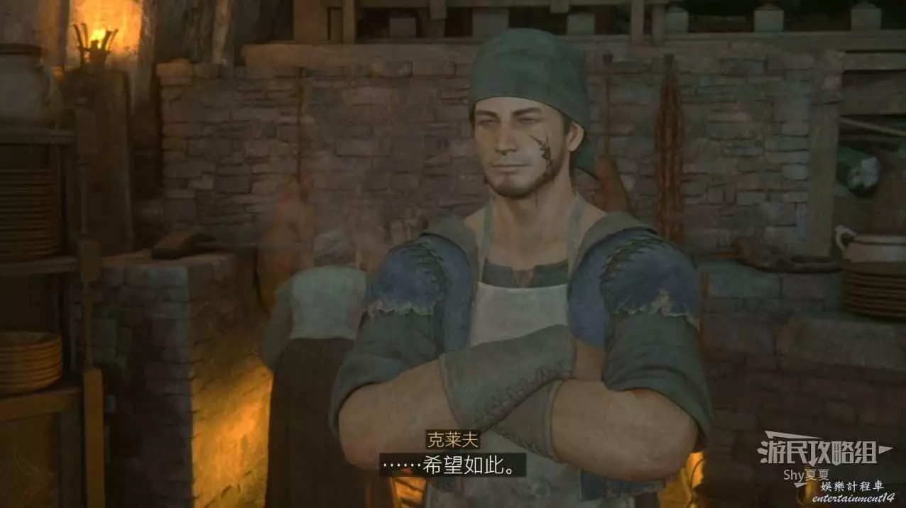 再次操作克萊夫後,來到食堂進入戰鬥,敵人難度不高,都是雜兵,優先擊殺順序:占星術師>軍團兵>上尉。