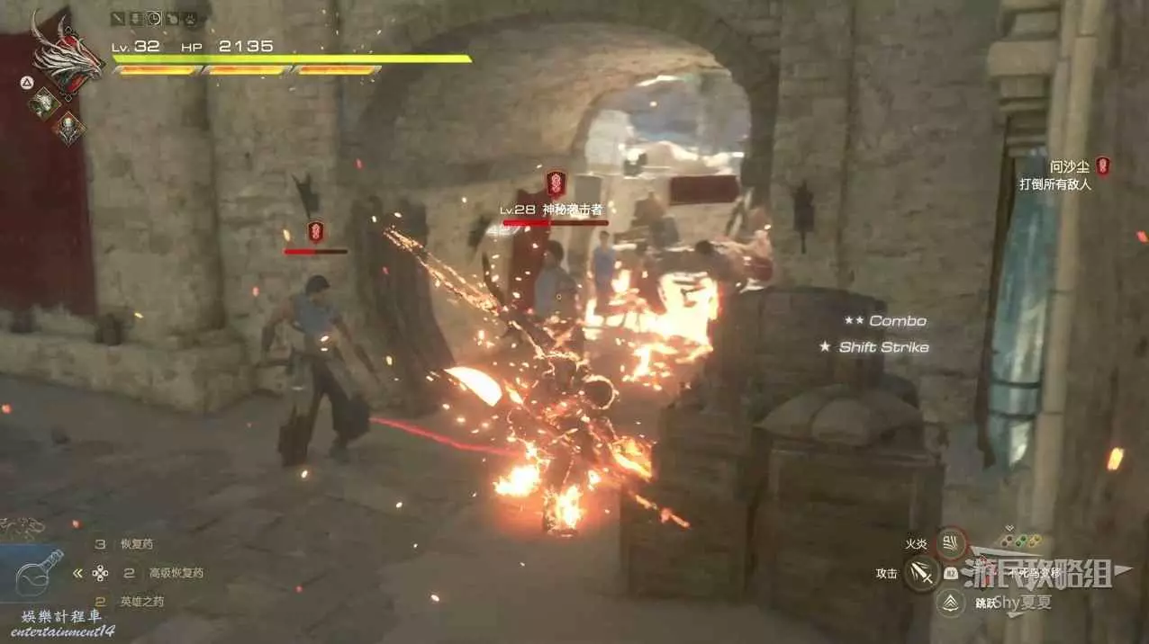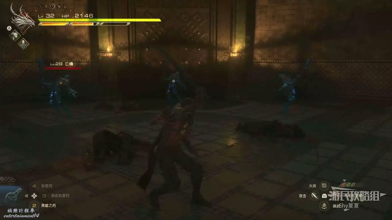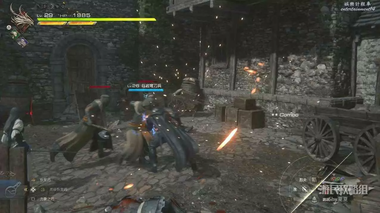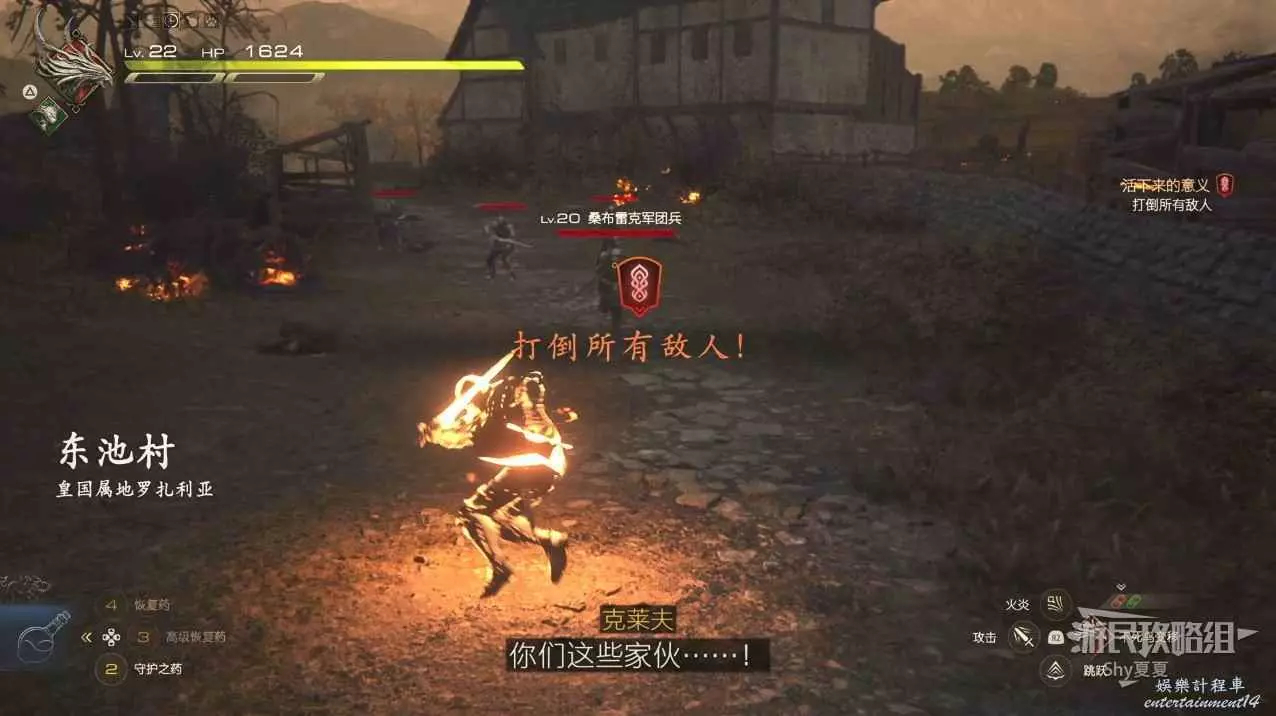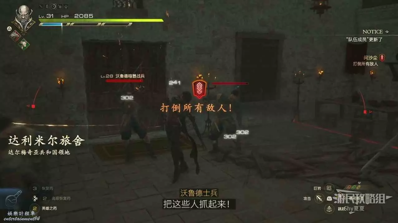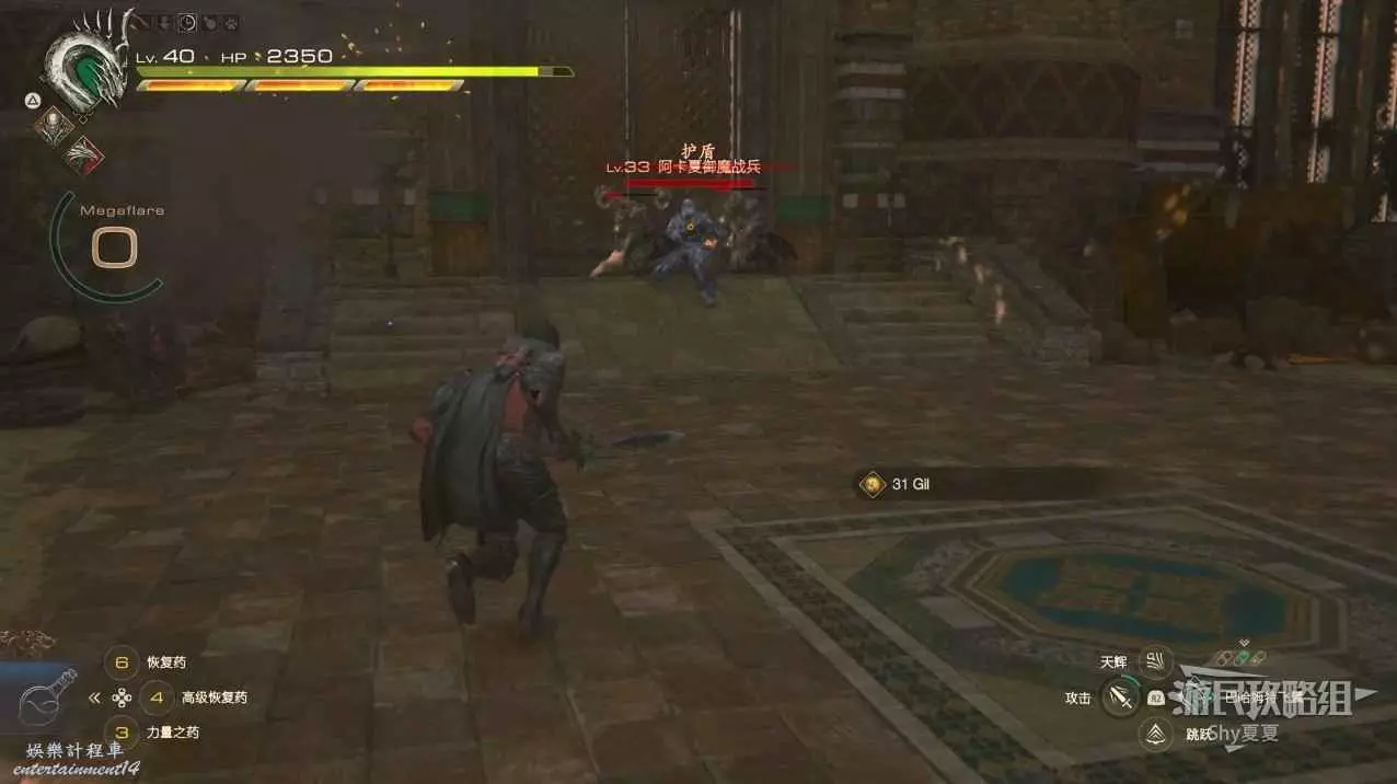 再次操作克萊夫後,來到食堂進入戰鬥,敵人難度不高,都是雜兵,優先擊殺順序:占星術師>軍團兵>上尉。