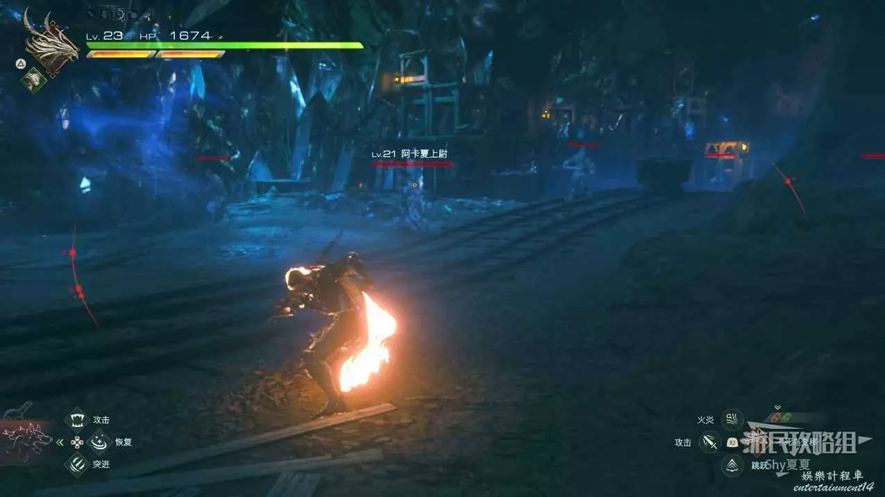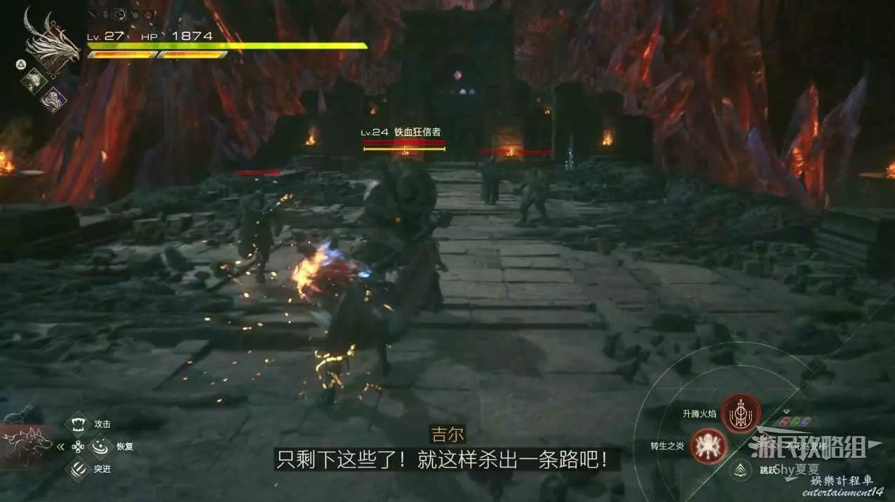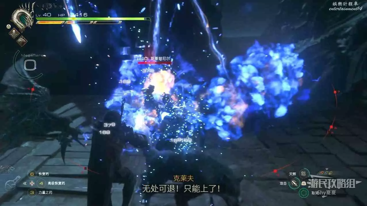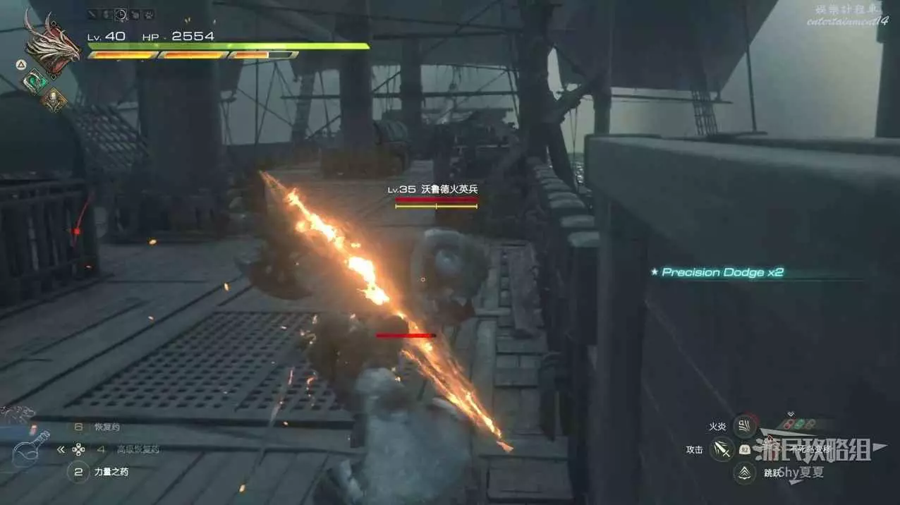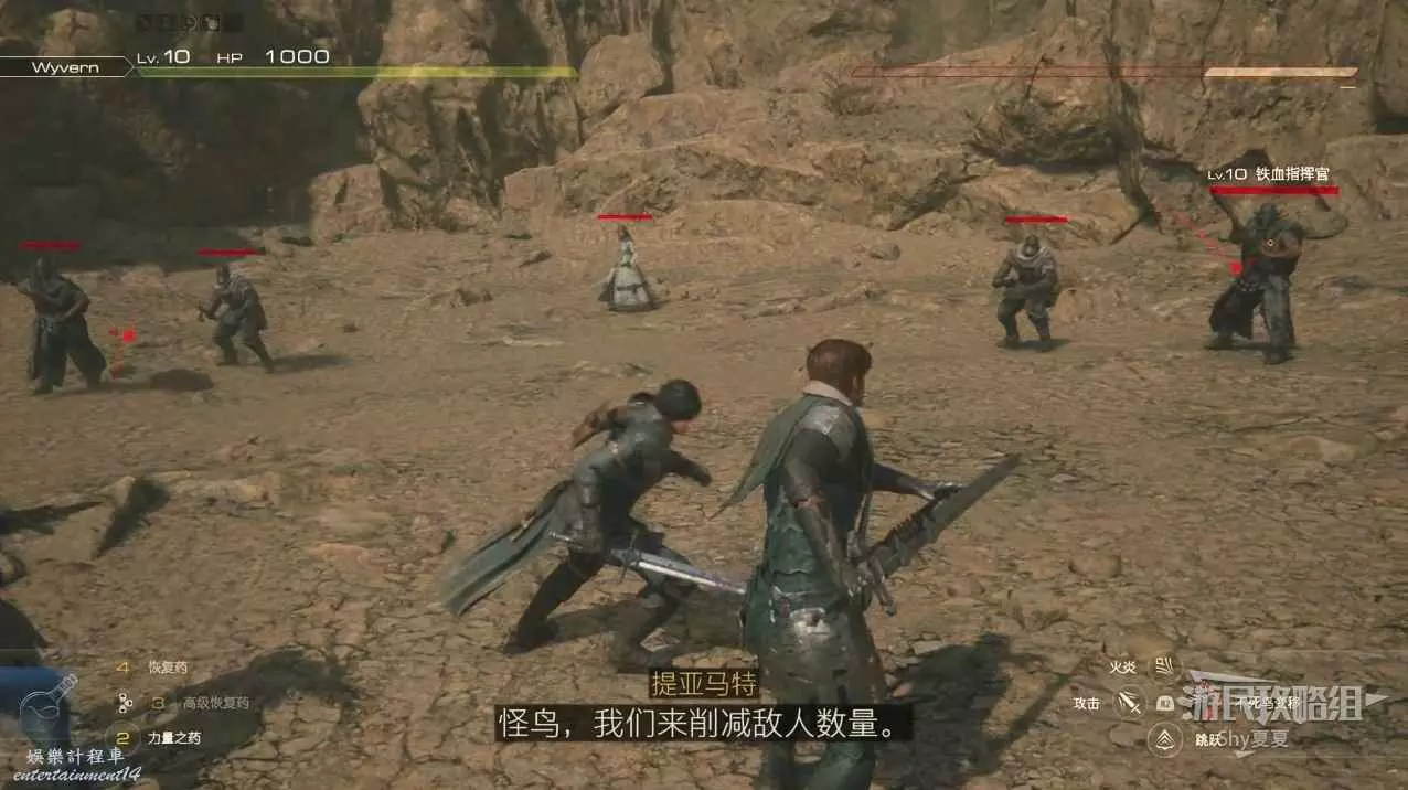 再次操作克萊夫後,來到食堂進入戰鬥,敵人難度不高,都是雜兵,優先擊殺順序:占星術師>軍團兵>上尉。