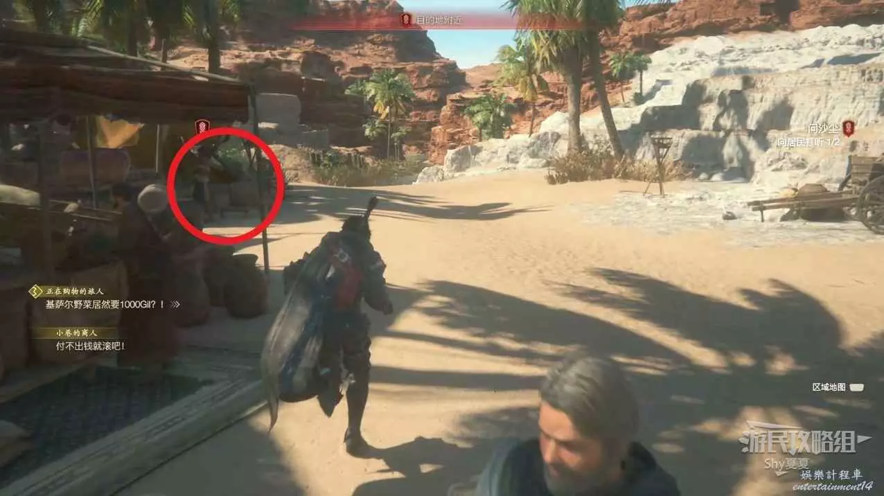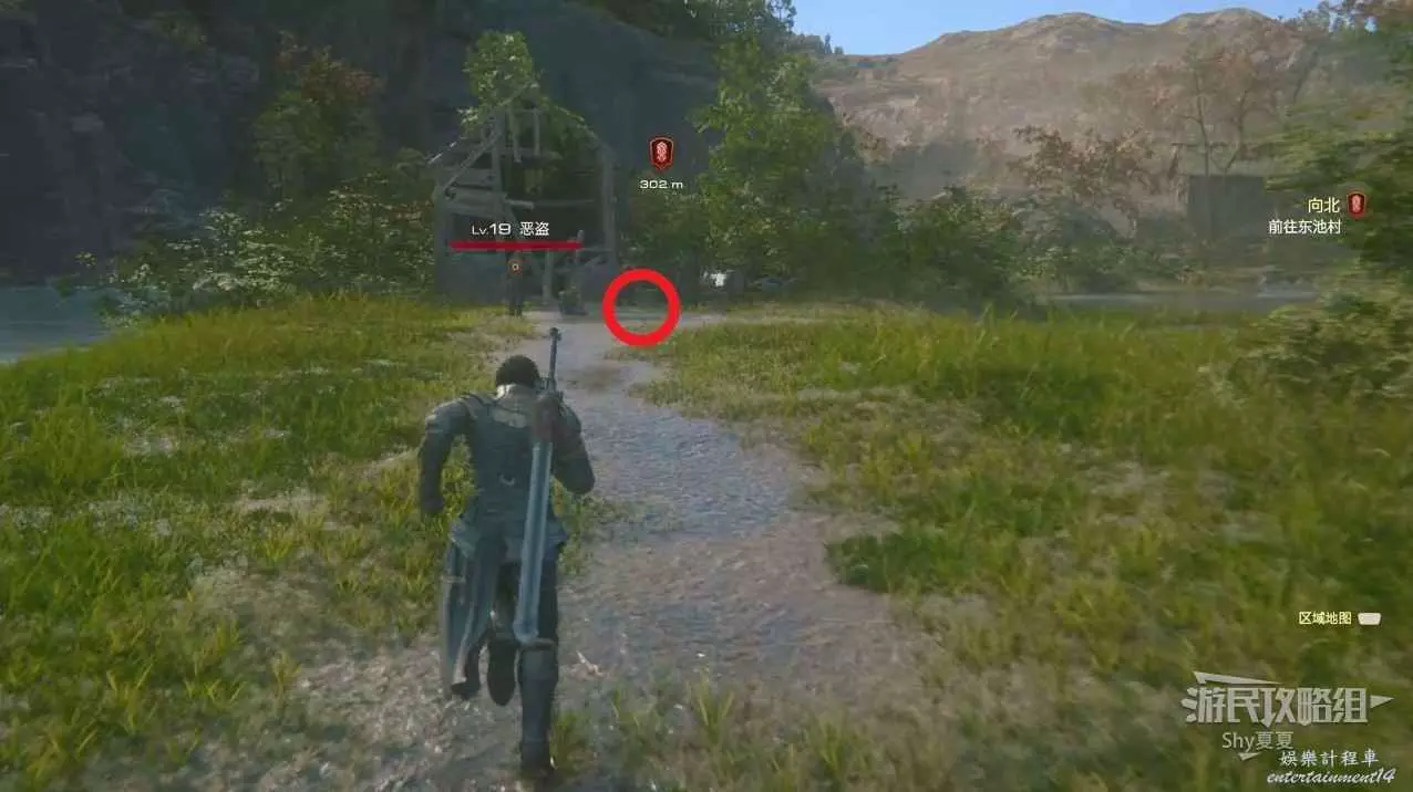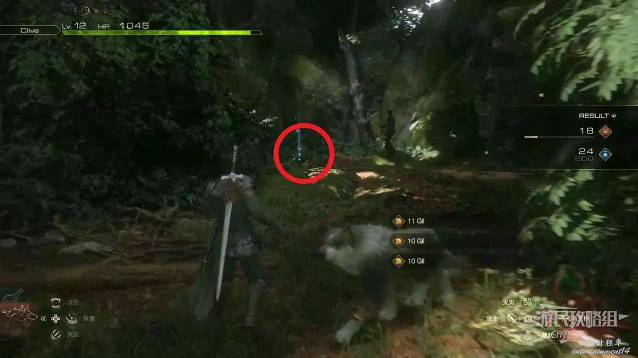 沿著道路前進,走不了很遠就能看到一個可拾取的道具,靠近獲得【2Gil】。