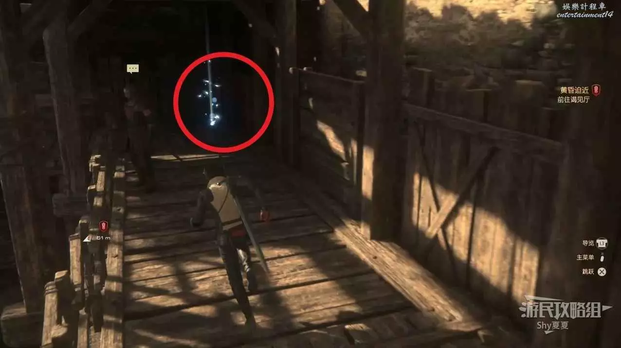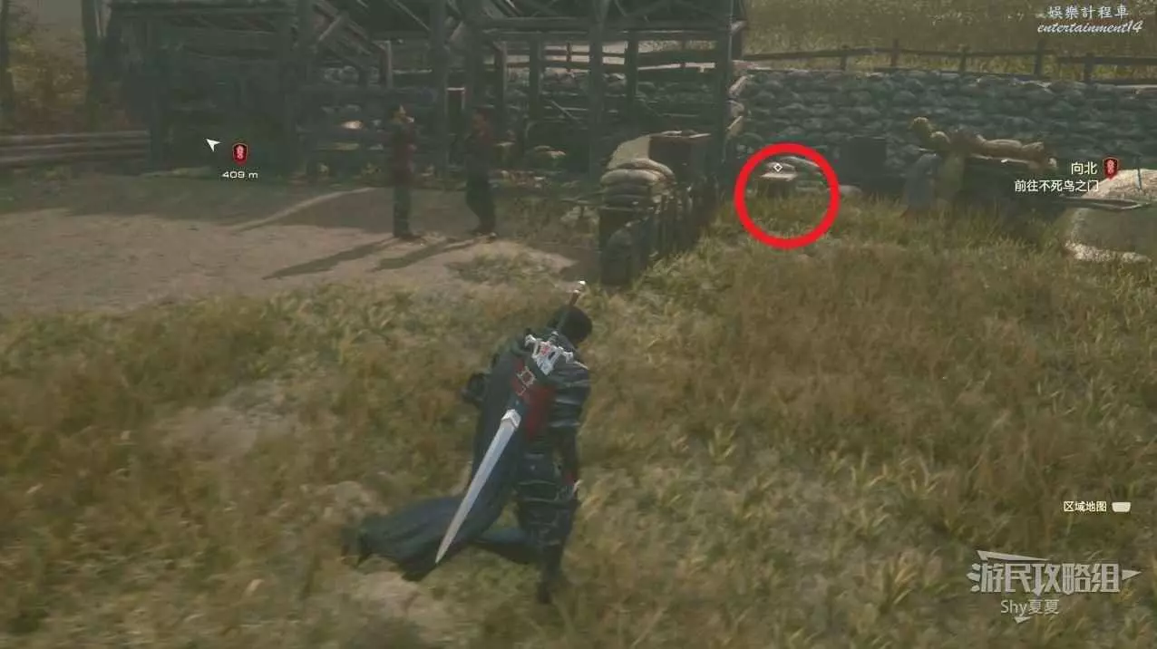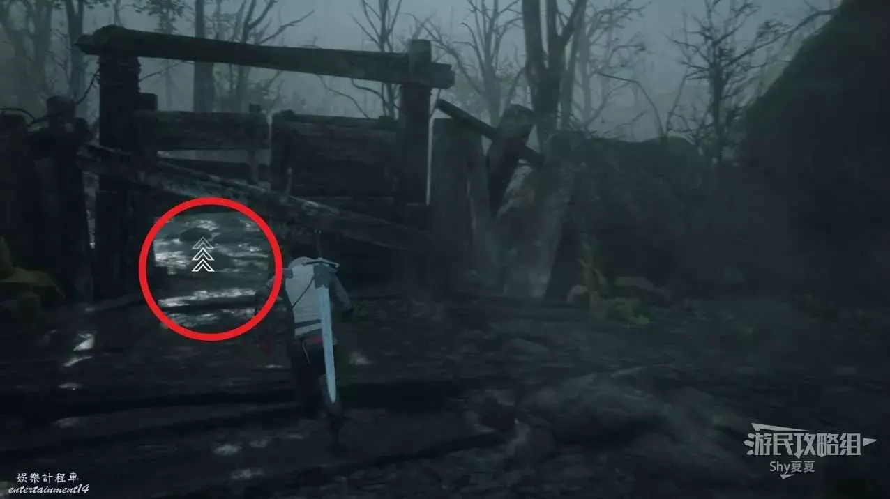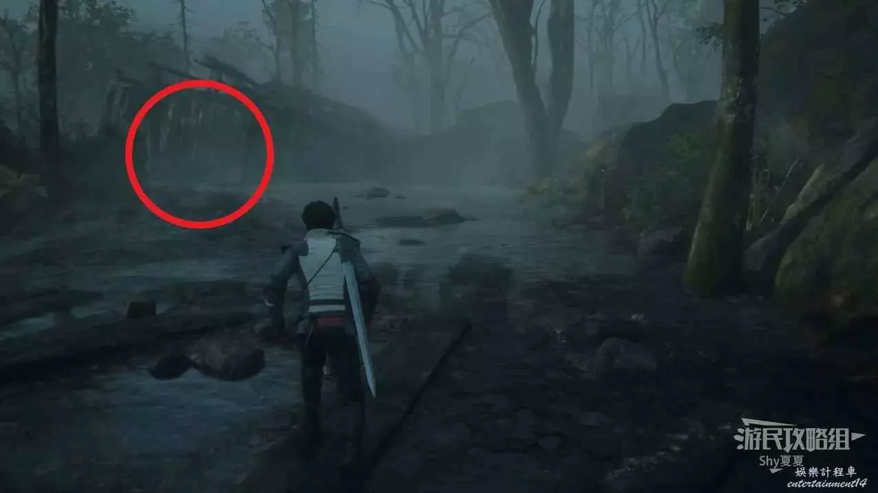 穿過木板後向右看,稍微遠一點的地方能看到下圖建築,進入建築內可以獲得【力量之藥】。