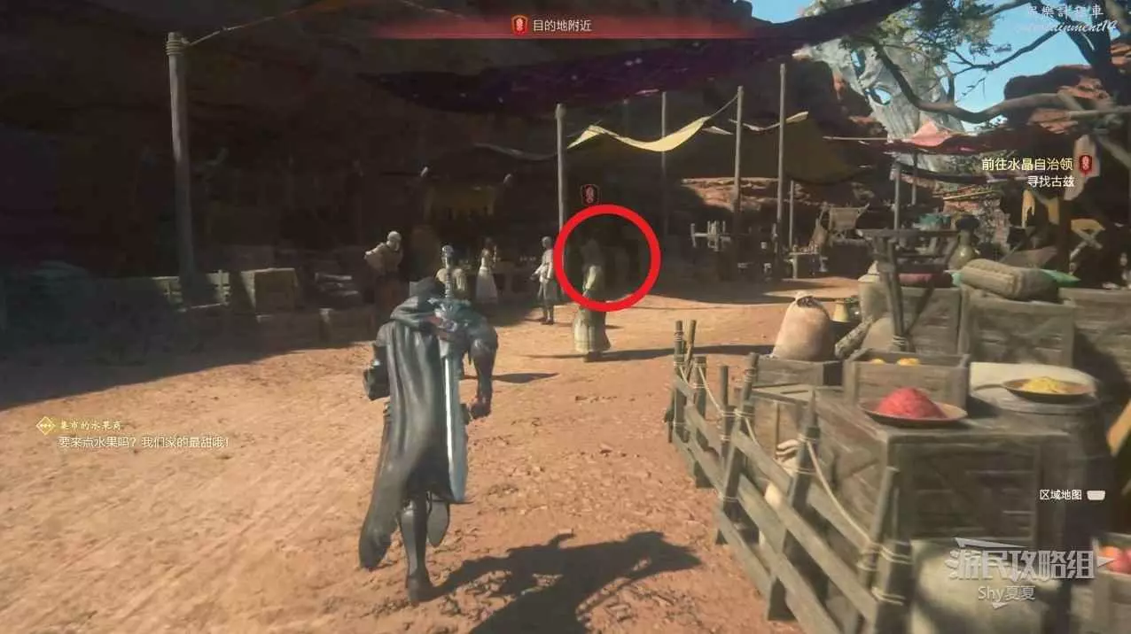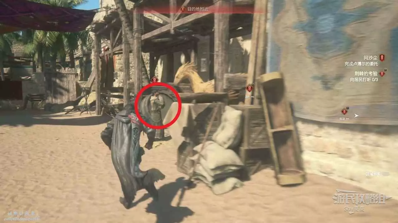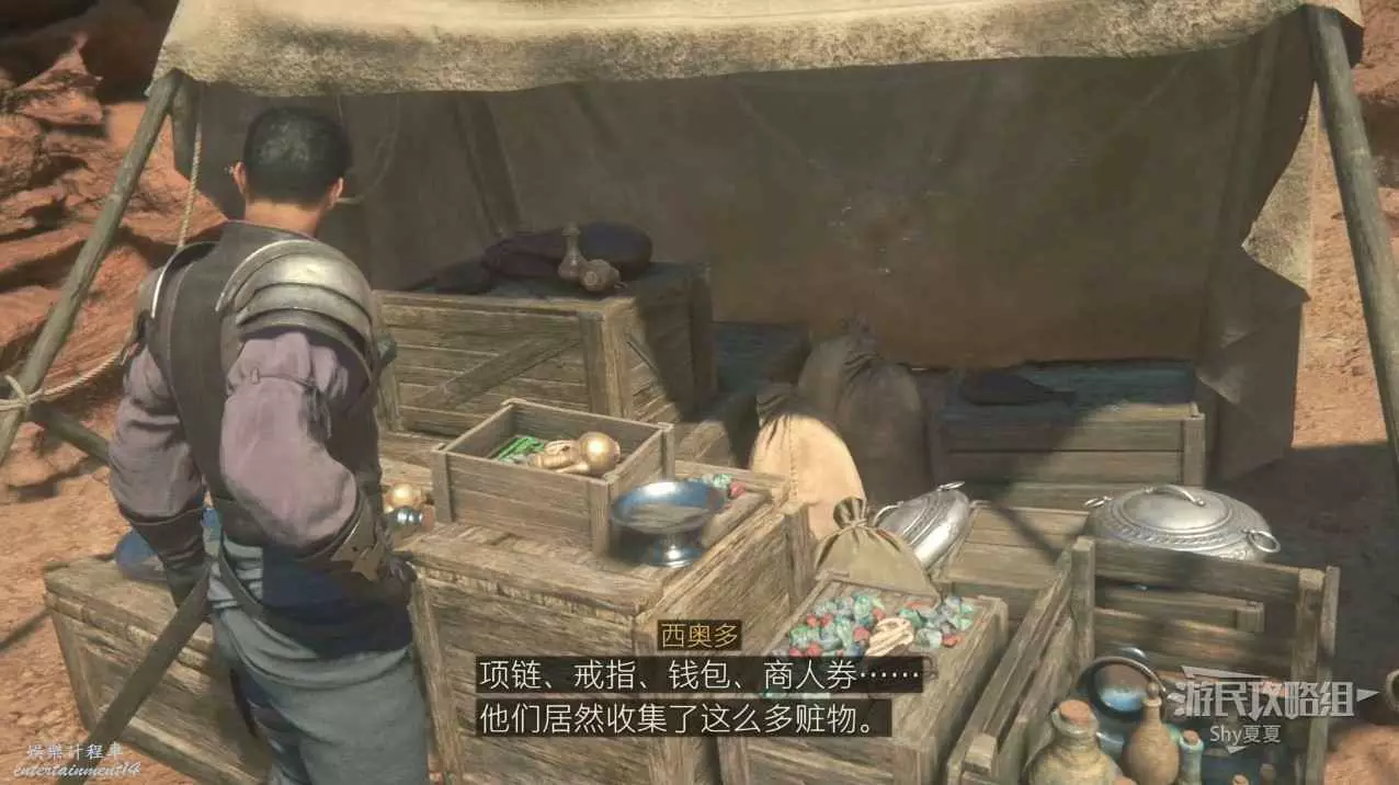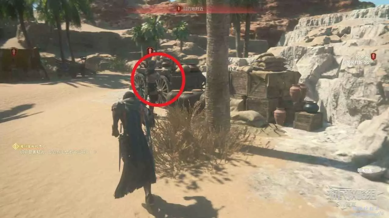 劇情結束後,就可以探索一下附近的收集要素了,面前帳篷旁的木桶上就有第一個收集品,靠近自動拾取【恢復藥】。