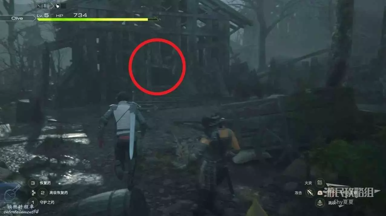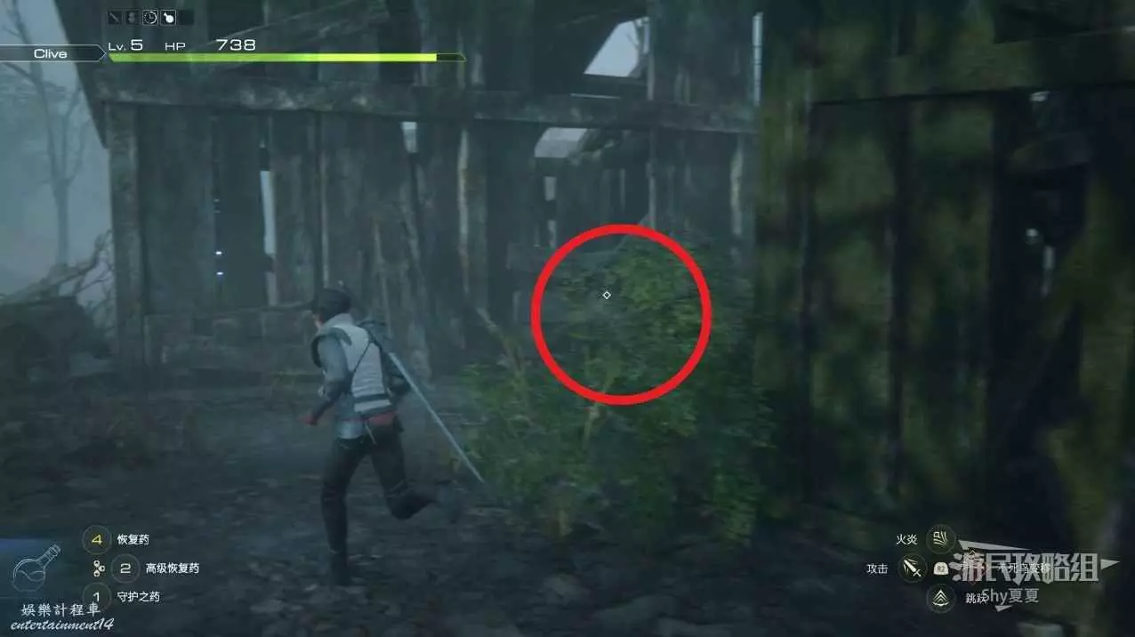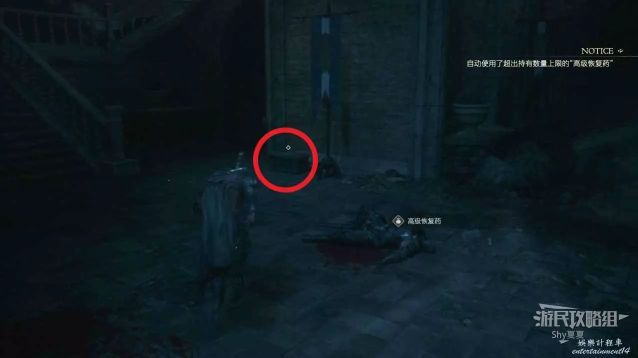 前往不死鳥庭院前,要先去旁邊的木質建築上,最內部可以拾取【高級恢復藥】。