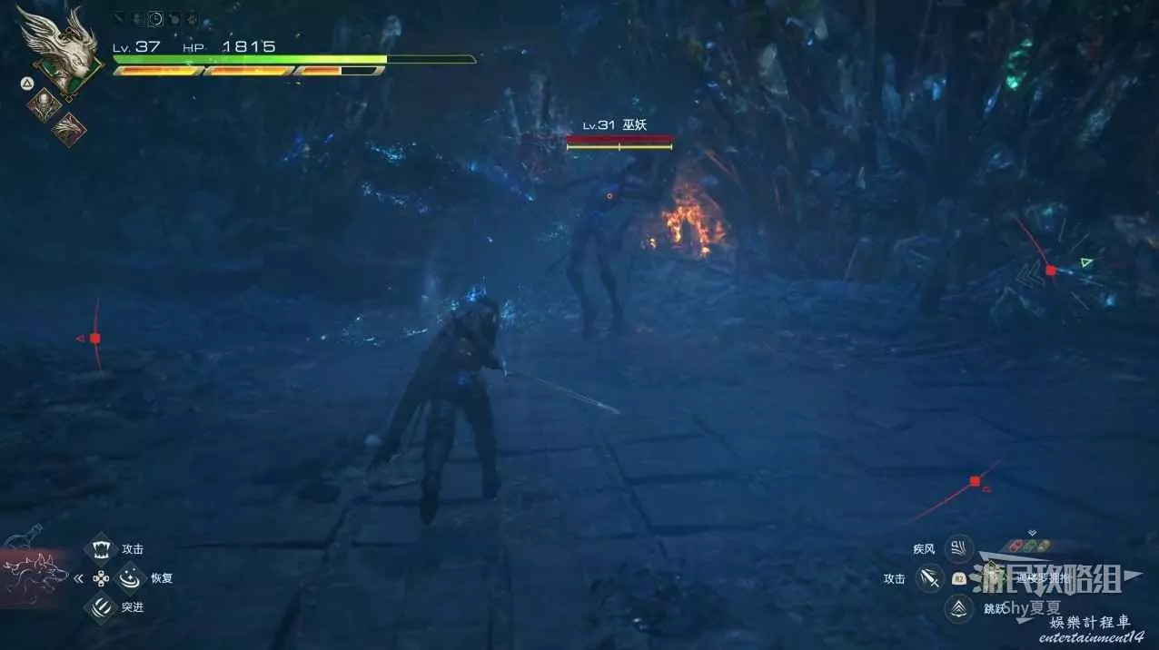 突刺接魔法:向前突刺後再接一個魔法攻擊。只要躲開第一個突刺,就可以直接輸出。