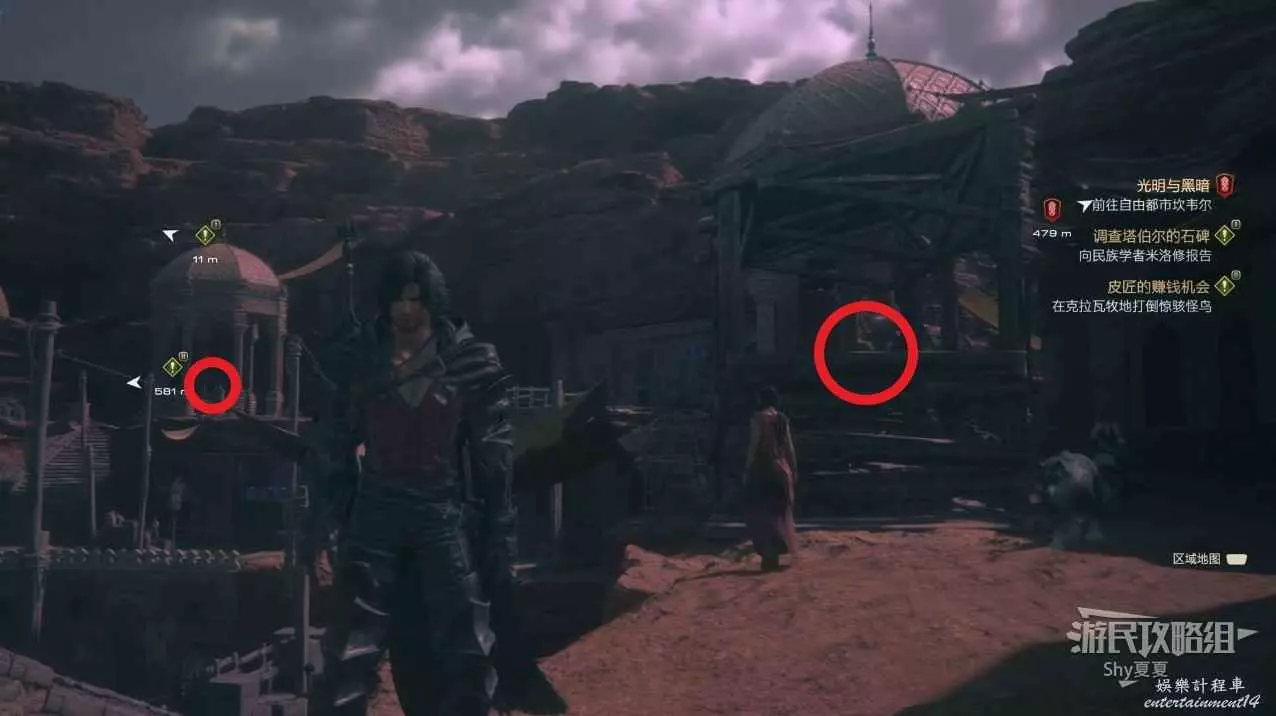 委託完成方法:前往【達爾梅奇亞-塔伯爾】與希利爾對話後,上樓與寶物管理人交談,然後在泰坦之路擊敗強敵西牟鳥獲得【破魔緋石】,回去交付任務。接著前往【羅紮利亞-鷹鳴斷崖】石碑掃墓,完成任務。