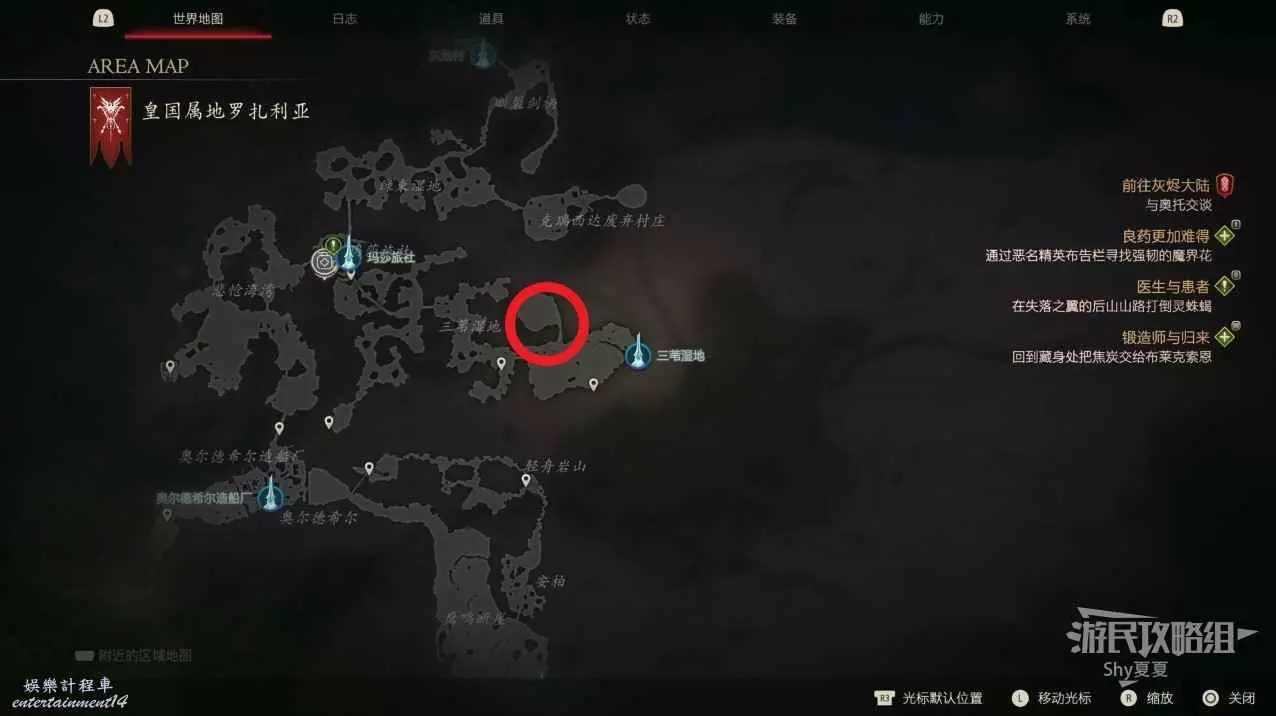 此時可以打開區域地圖,看到整個藏身處的佈局。接下來直接去二層希德的房間即可。
