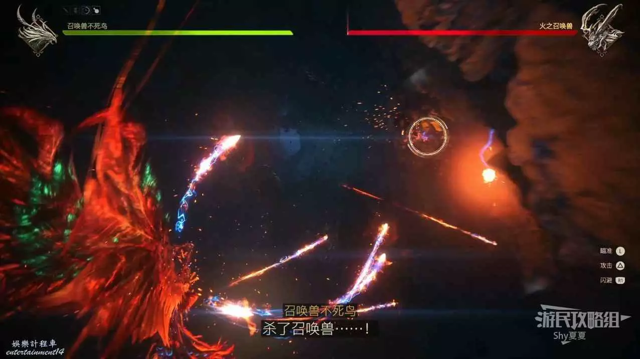 劇情之後又要操作不死鳥與火之召喚獸對戰了,這裡可以瞄準射擊了,一直攻擊敵人,然後躲避其攻擊即可。