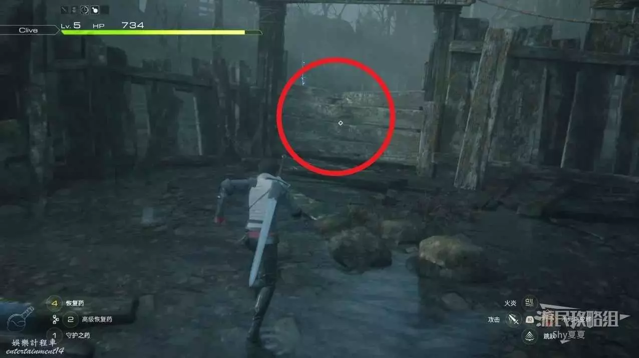 拾取後,回到剛剛擊殺哥布林的場景,推開下圖紅圈的木板,前面可以拾取【恢復藥】。