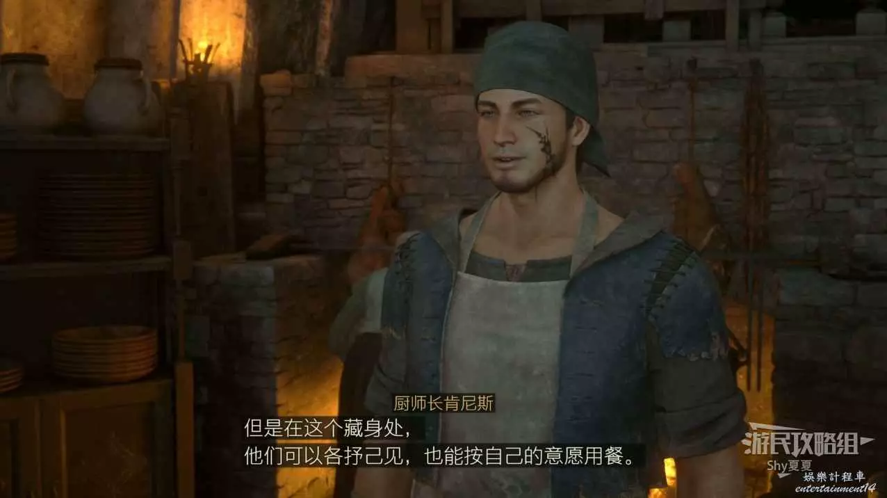 委託介紹:在希德的藏身處廚房裡,受廚師長肯尼斯所托,幫忙運送餐點。似乎有3位居民在等著餐點送達。受肯尼斯所托要送達餐點的對象,都是在藏身處裡過著跟普通人同樣生活的稟賦者。他們在這裡都能按自己的意思來行動。