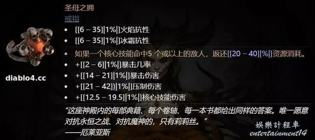 除了冰火傷害外,聖母之擁太提供雙暴、壓制傷害和核心傷害,這是目前暗黑4最強最全面的增傷裝備。