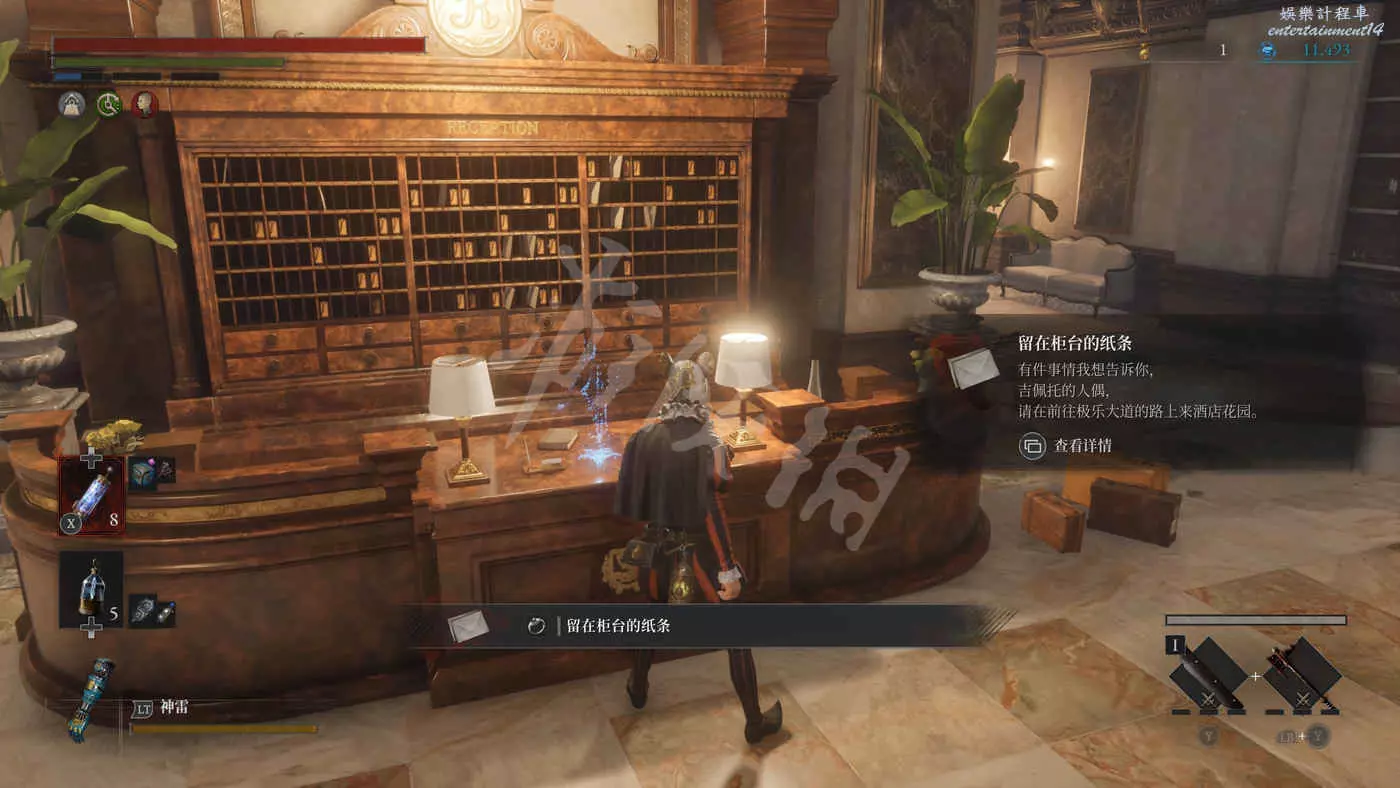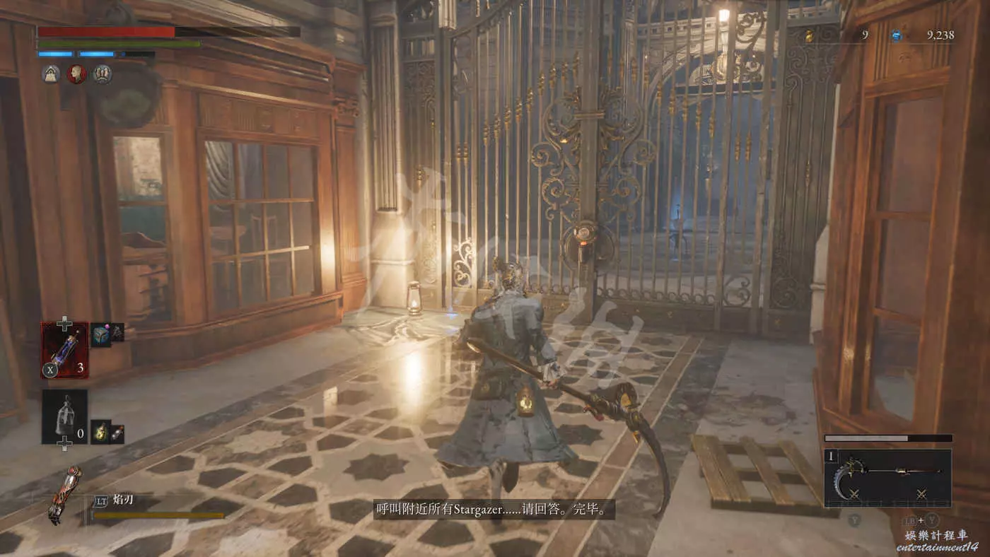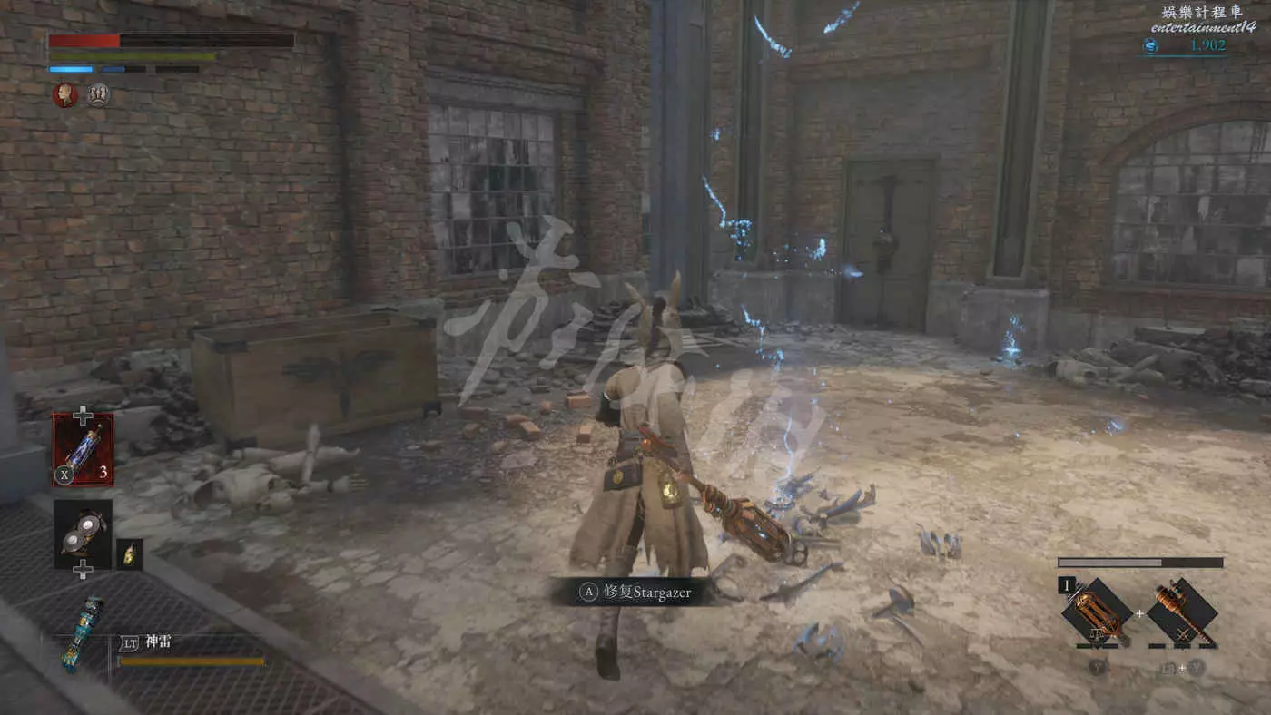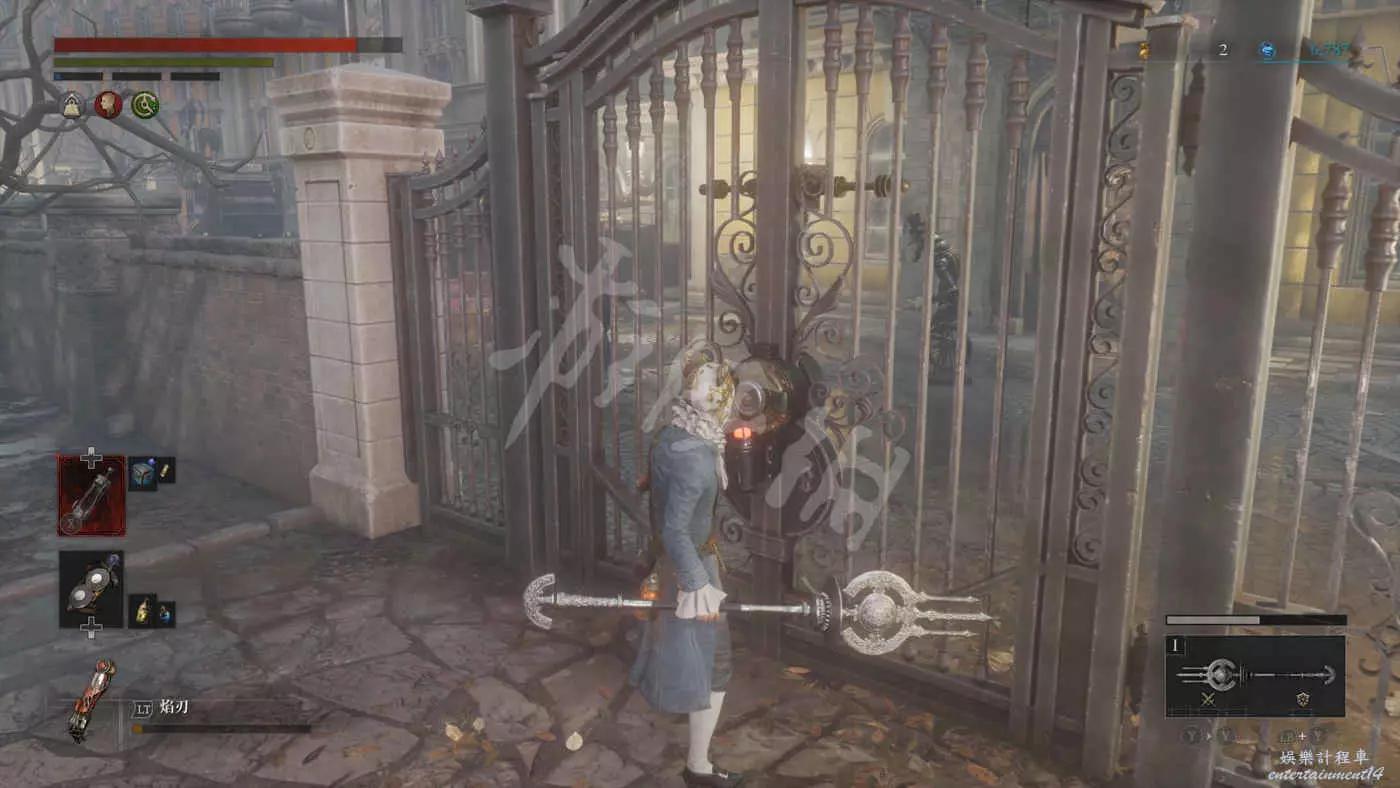在樓下的小花園有個守衛,擊敗後獲得裝備【力量護身符】,還有個大寶箱,打開後拿到【石英】,另外還有個通往博覽會展廳入口的捷徑。