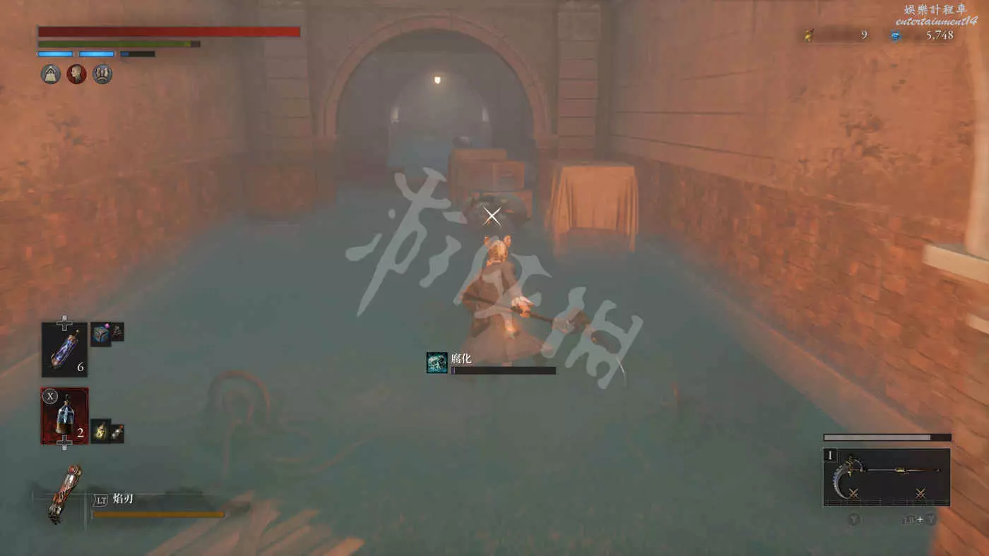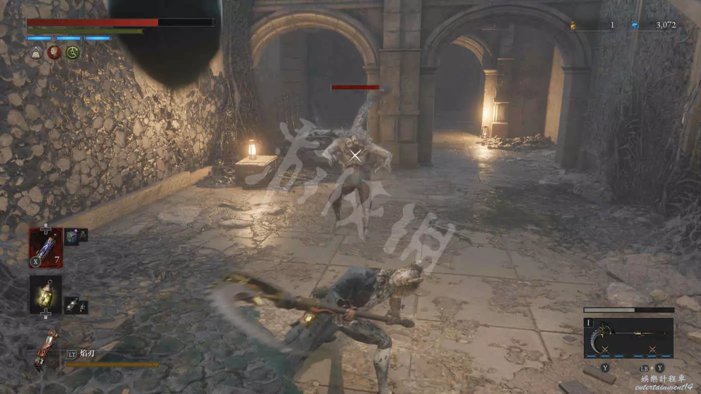穿過地下走廊往上回到二樓,在過道會遇到體型健壯的披風哥,攻擊招式和活屍熊類似,體型較大可以卡走廊拐角蹭刀。