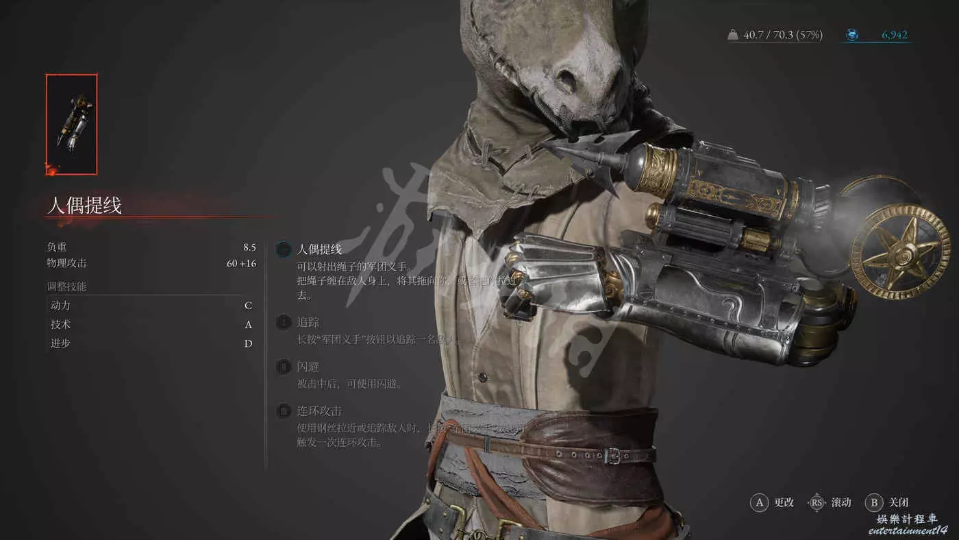 找工坊的歐也妮對話可以獲得軍團義手【人偶提線】,後續可以在工坊進行武器組裝或是升級改造。