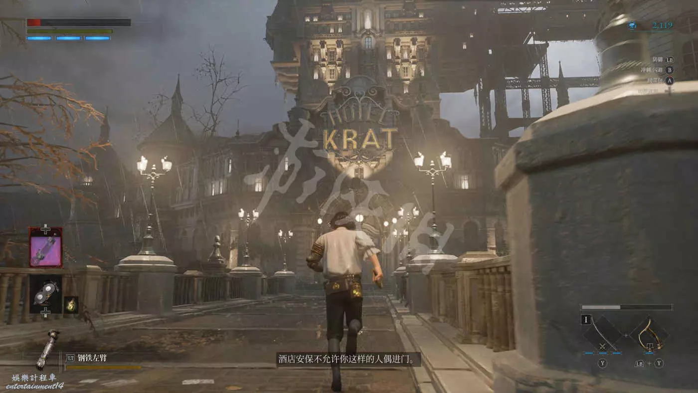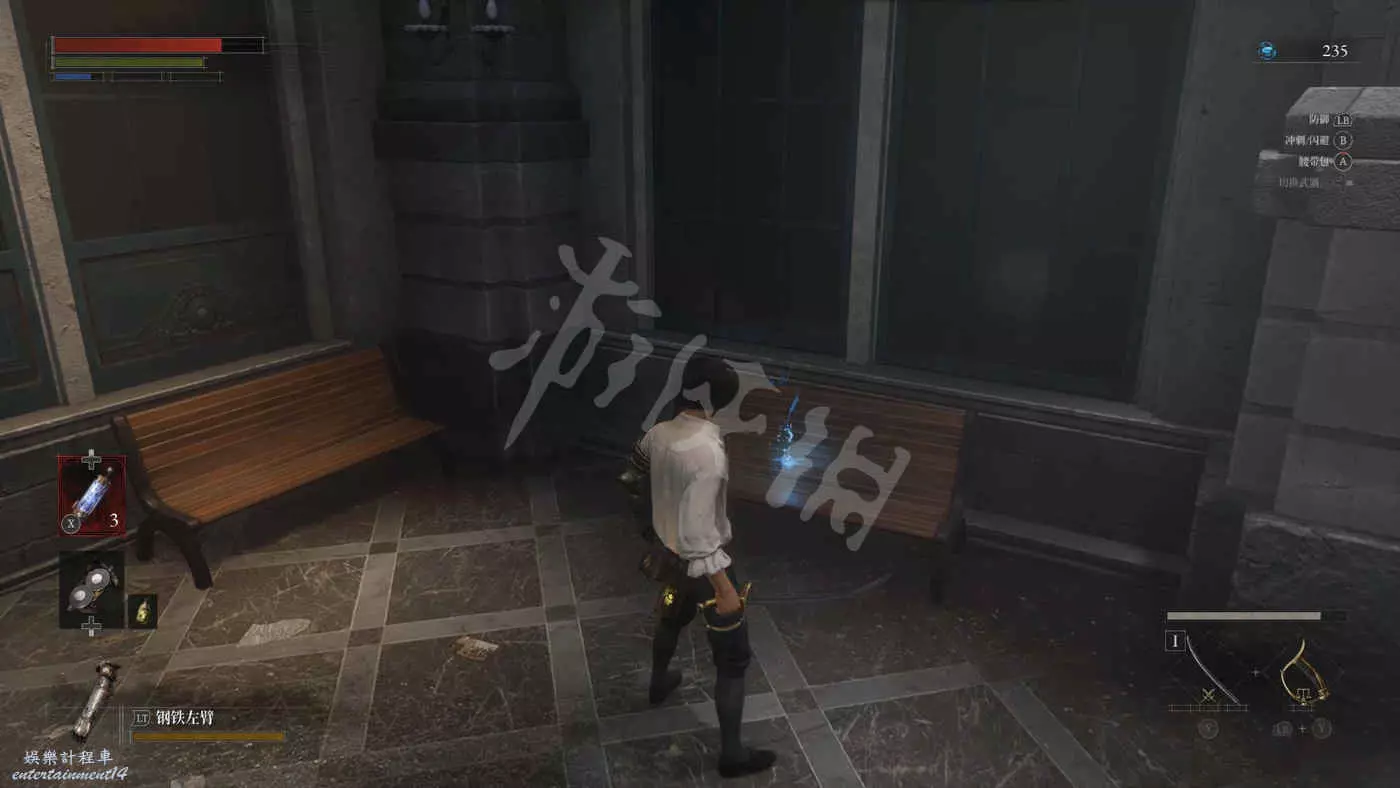 回到一層會遇到一個高大的警員人偶,血比較厚,正好可以拿來練習下完美防禦。擊敗他可以拿到車站入口處的鑰匙。