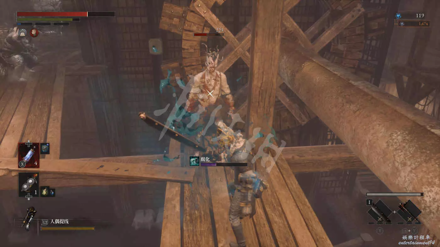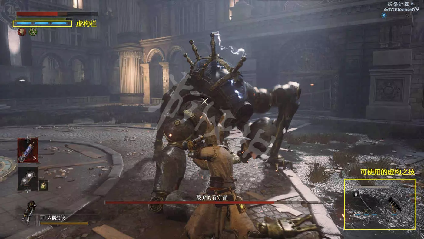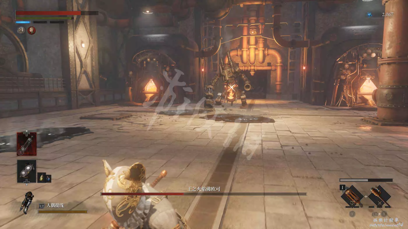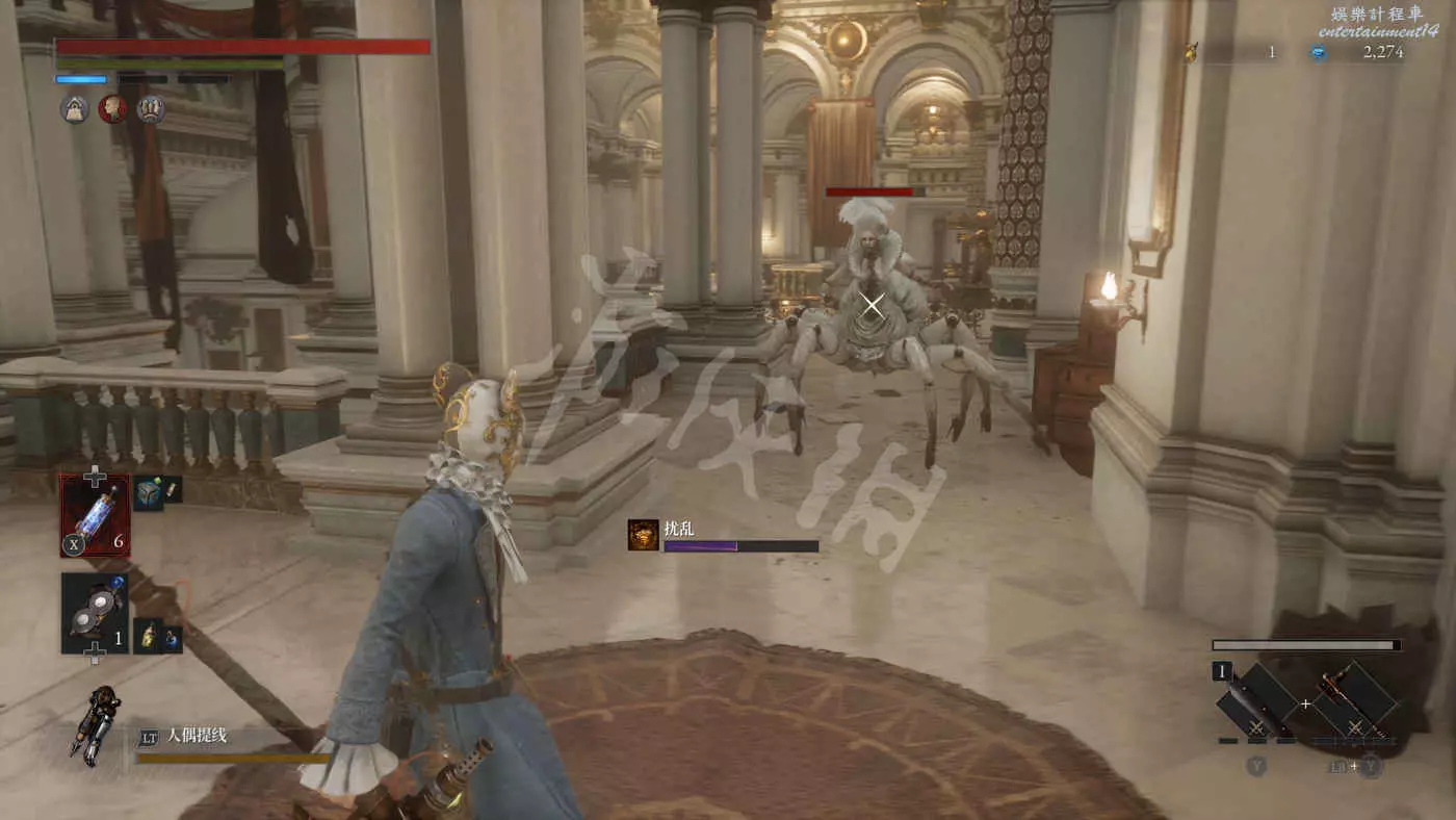 進入歌劇院先往右上走,遇到新怪“提線人偶”和“蜘蛛人偶”,這兩者會一起出現,蜘蛛人偶會強化自身附近的提線人偶,為其提供減傷和霸體,而且唱歌還會累計P的擾亂異常狀態(滿槽後直接秒殺)。可以選擇先把提線木偶勾引出強化範圍解決掉,也可以選擇直接快速幹掉蜘蛛,兩種解決對策需要根據實際情況做出合適的選擇。