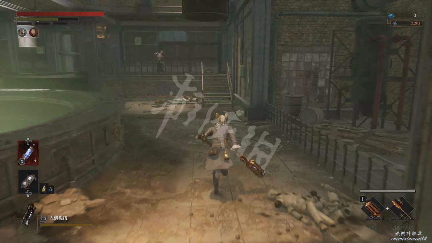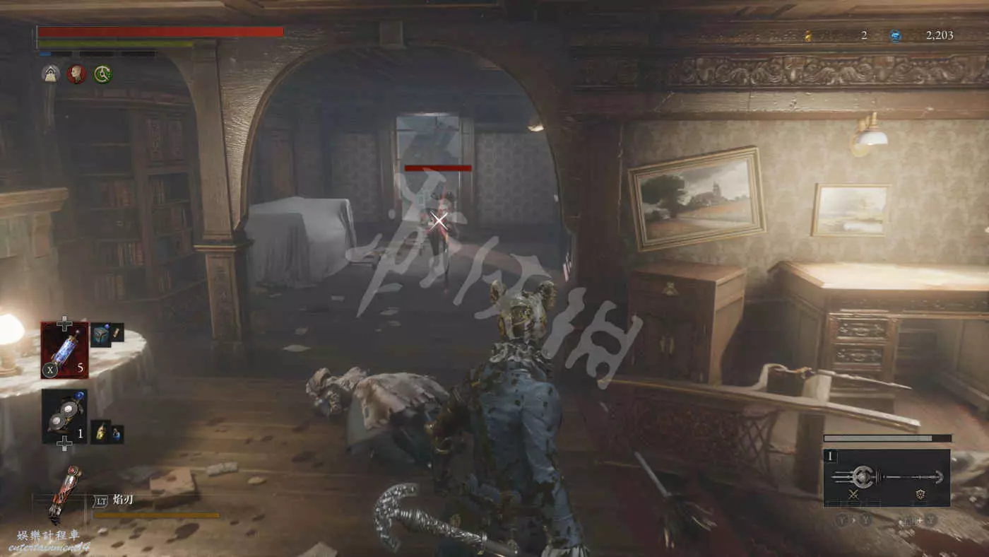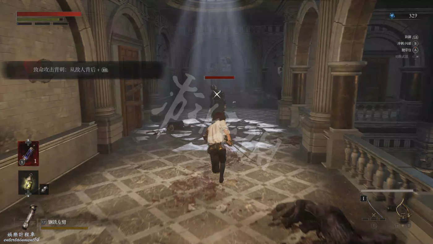 來到二樓,看到一個背對我們的敵人,可以用背刺將其解決掉。