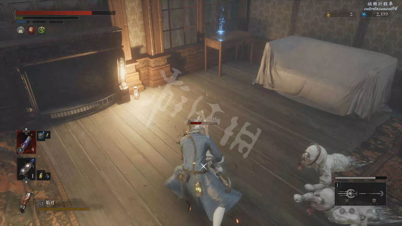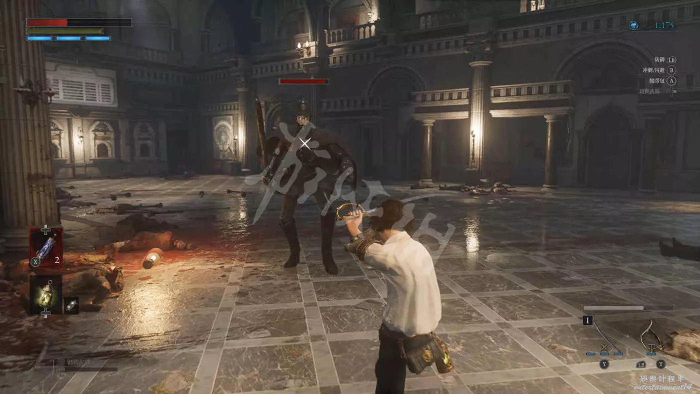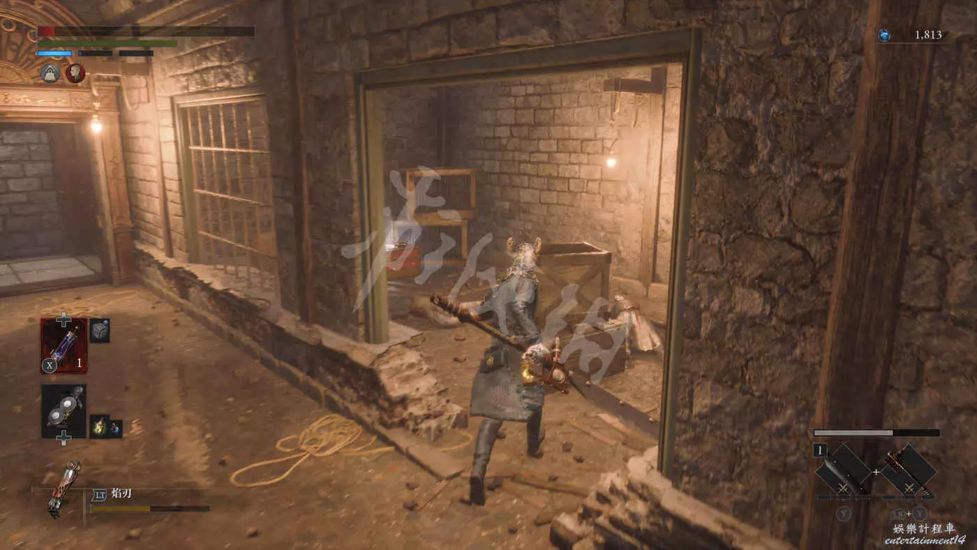來到二樓,看到一個背對我們的敵人,可以用背刺將其解決掉。