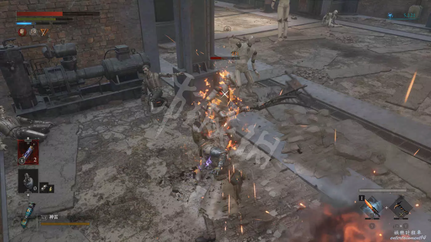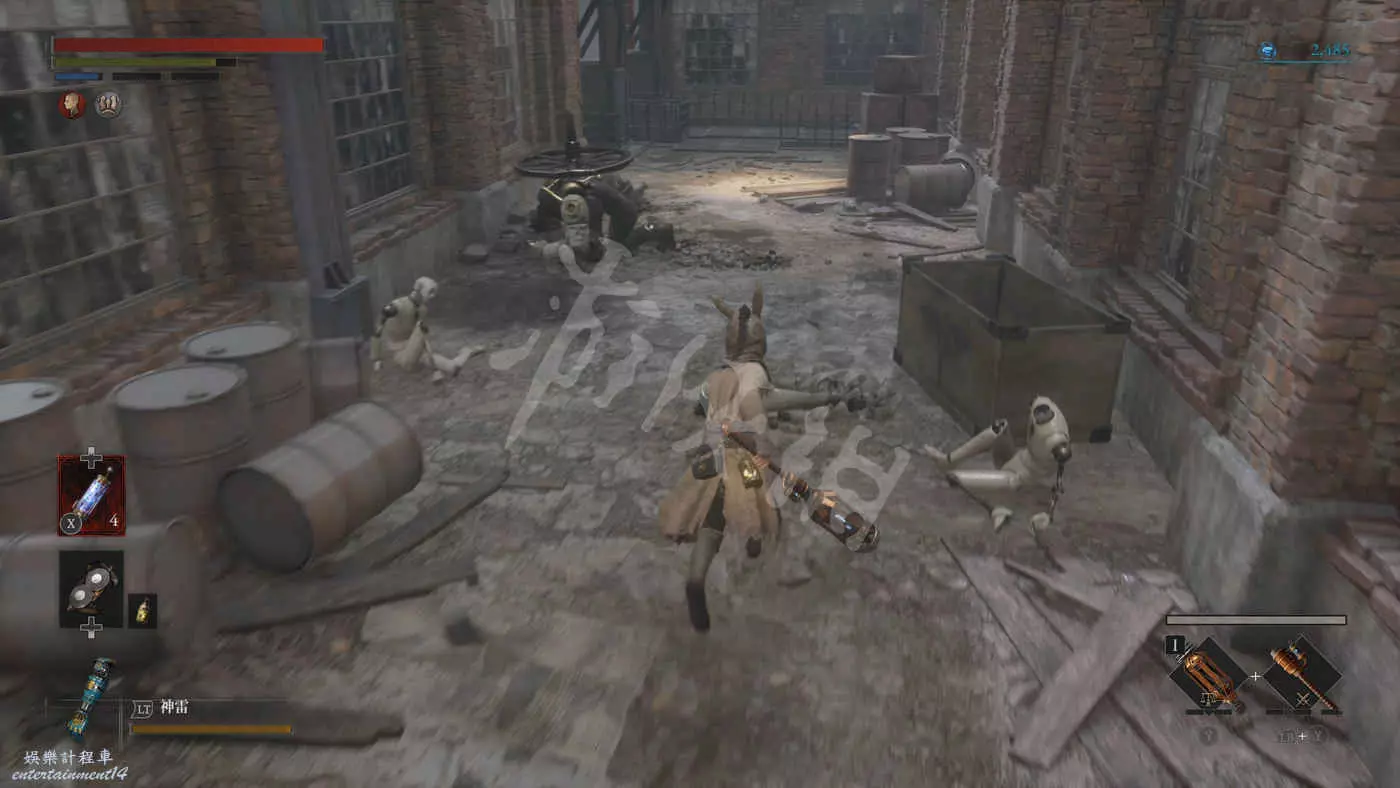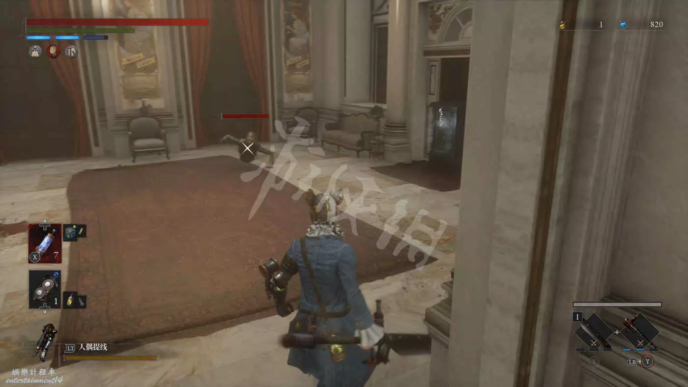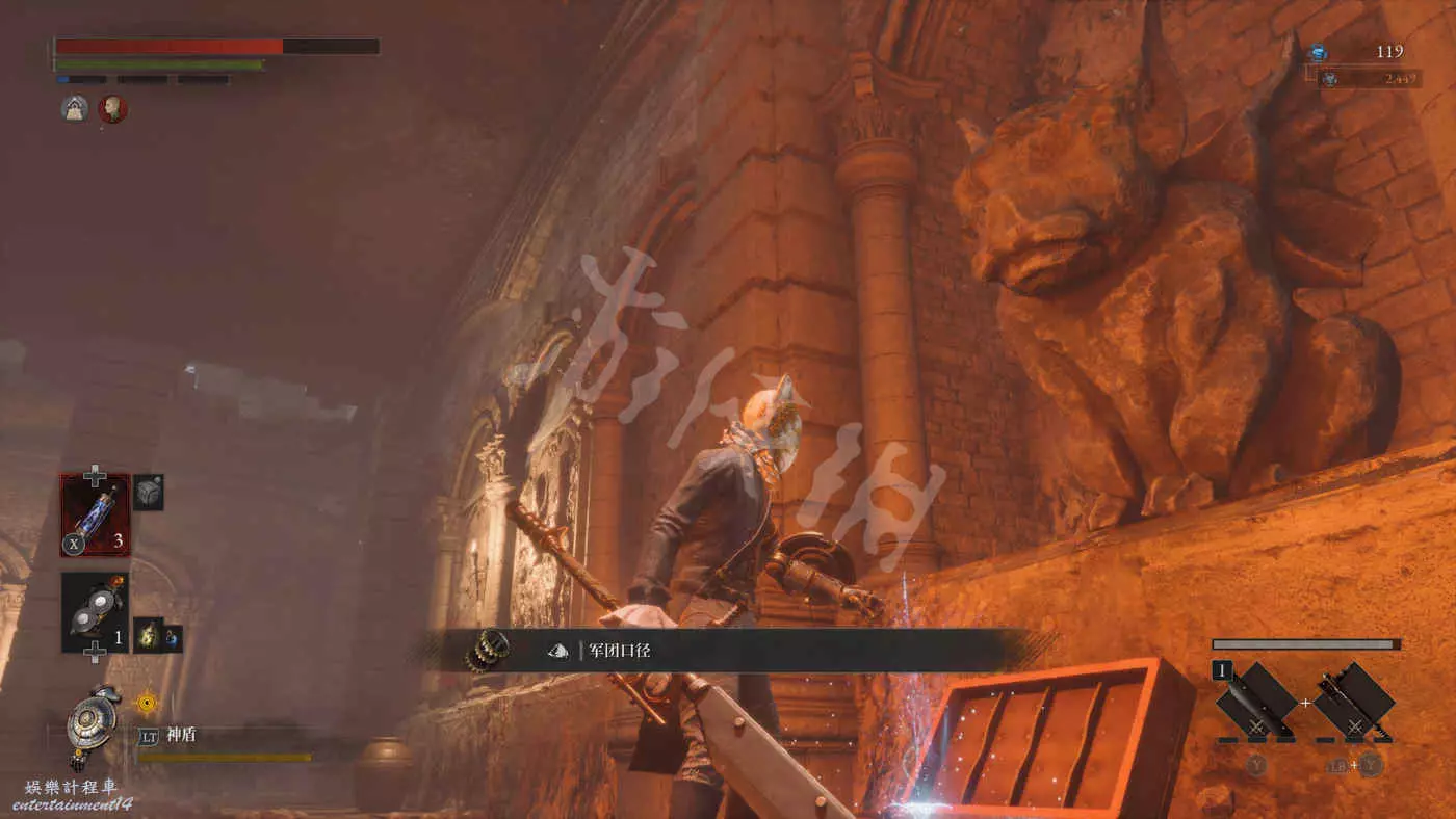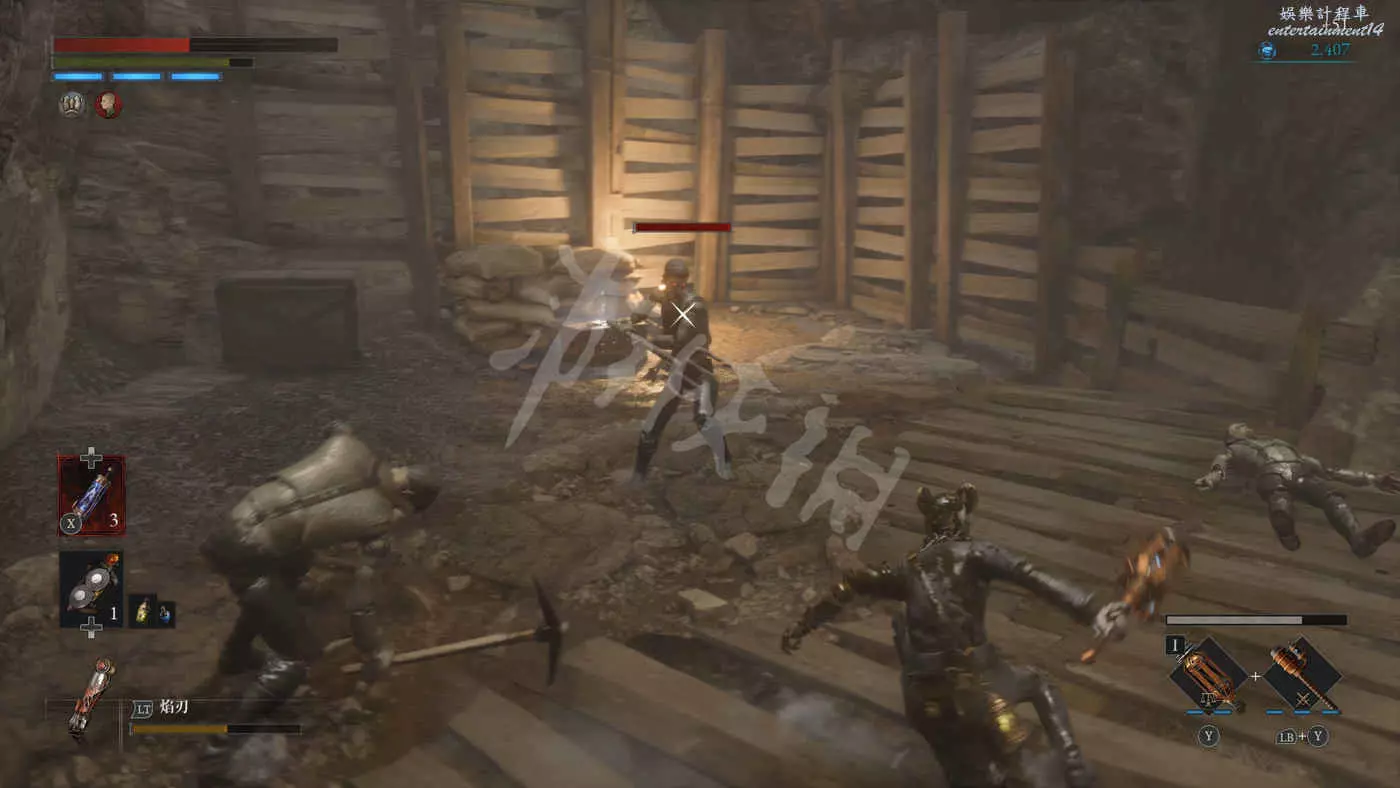 來到二樓會遇到三個擲彈人偶+一個盾兵的組合,建議先把盾兵勾引過來幹掉然後再去解決三個擲彈兵。
