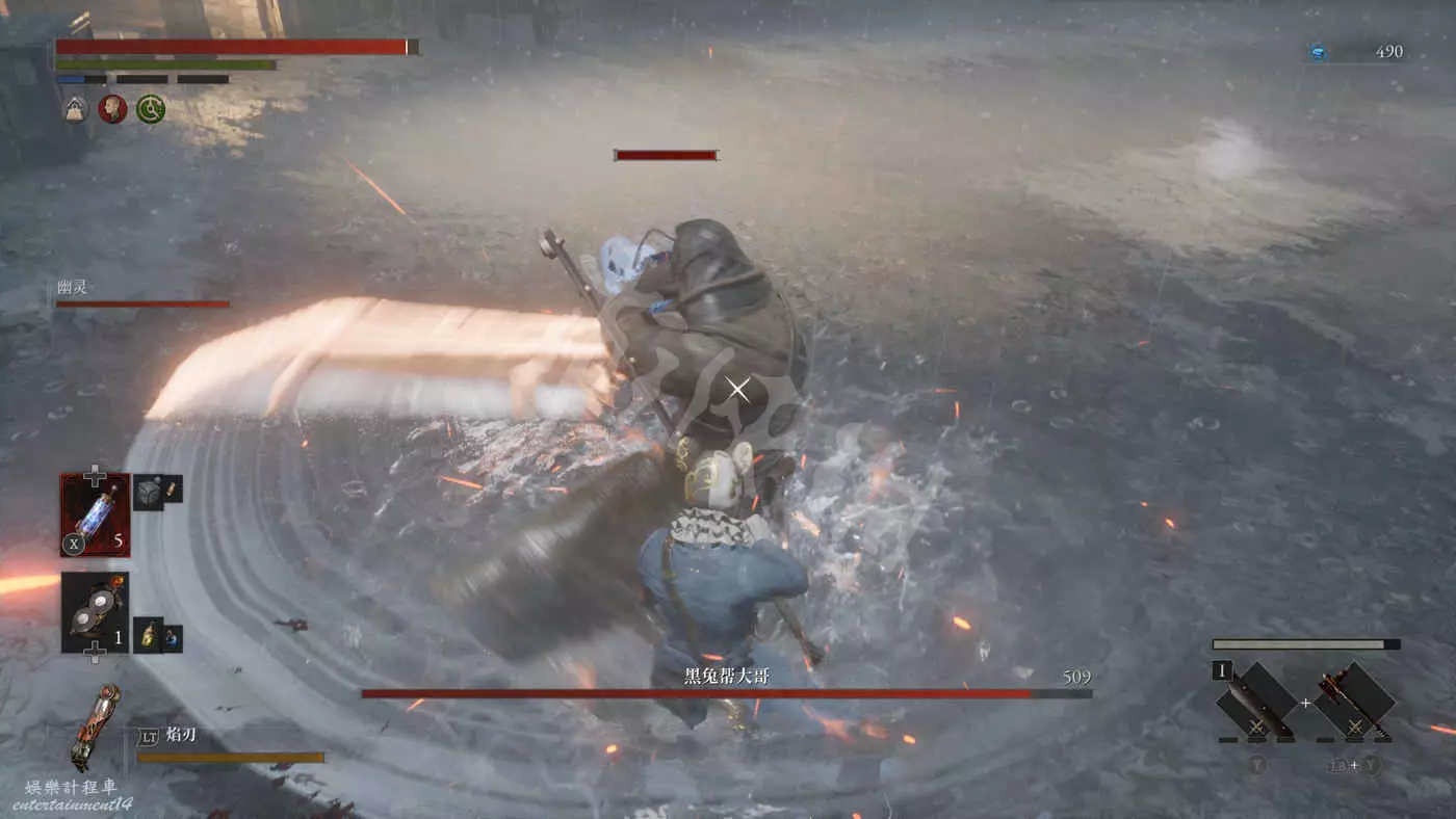 60%血量進二階段,Boss會把頭頂的棍拔下來當作武器,這個階段Boss的攻擊範圍會變大,最好的打法就是貼身近戰輸出,Boss攻擊就防禦,儘量別貪刀,也不需要執著於完美防禦,注意控好耐力就OK。