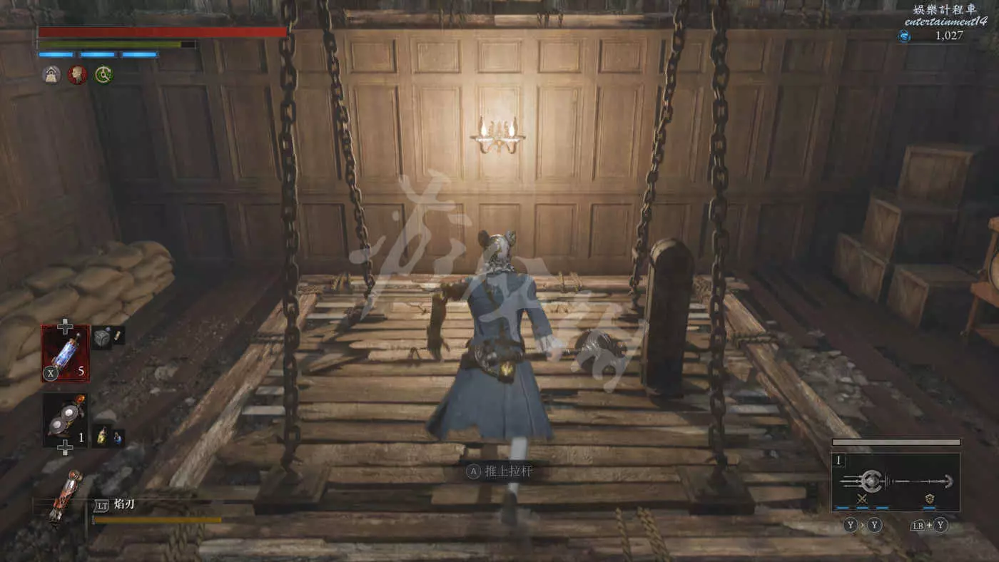 爬上梯子繼續前進,來到一個小平台會看到控制梯子的裝置,操作裝置將梯子放下解鎖捷徑。