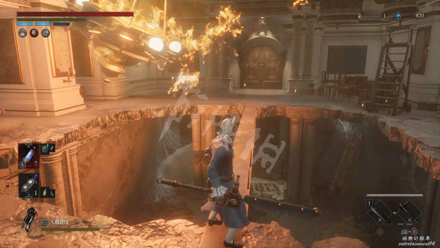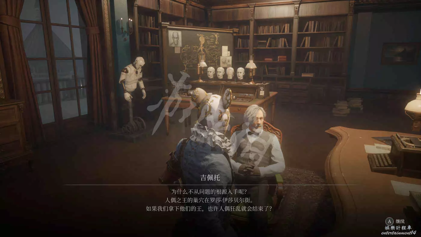回到燃燒燈擺的房間,走過獨木橋,打開門進入劇場,見到人偶動亂的“主謀”——人偶之王。
