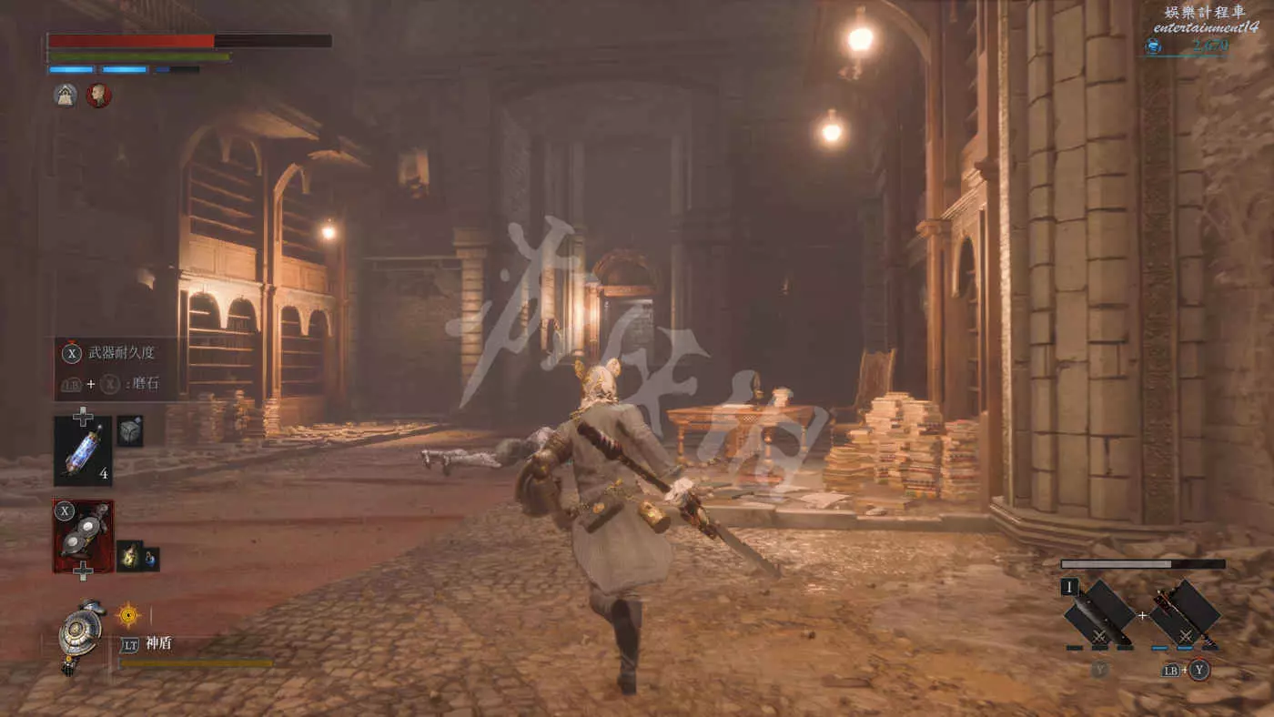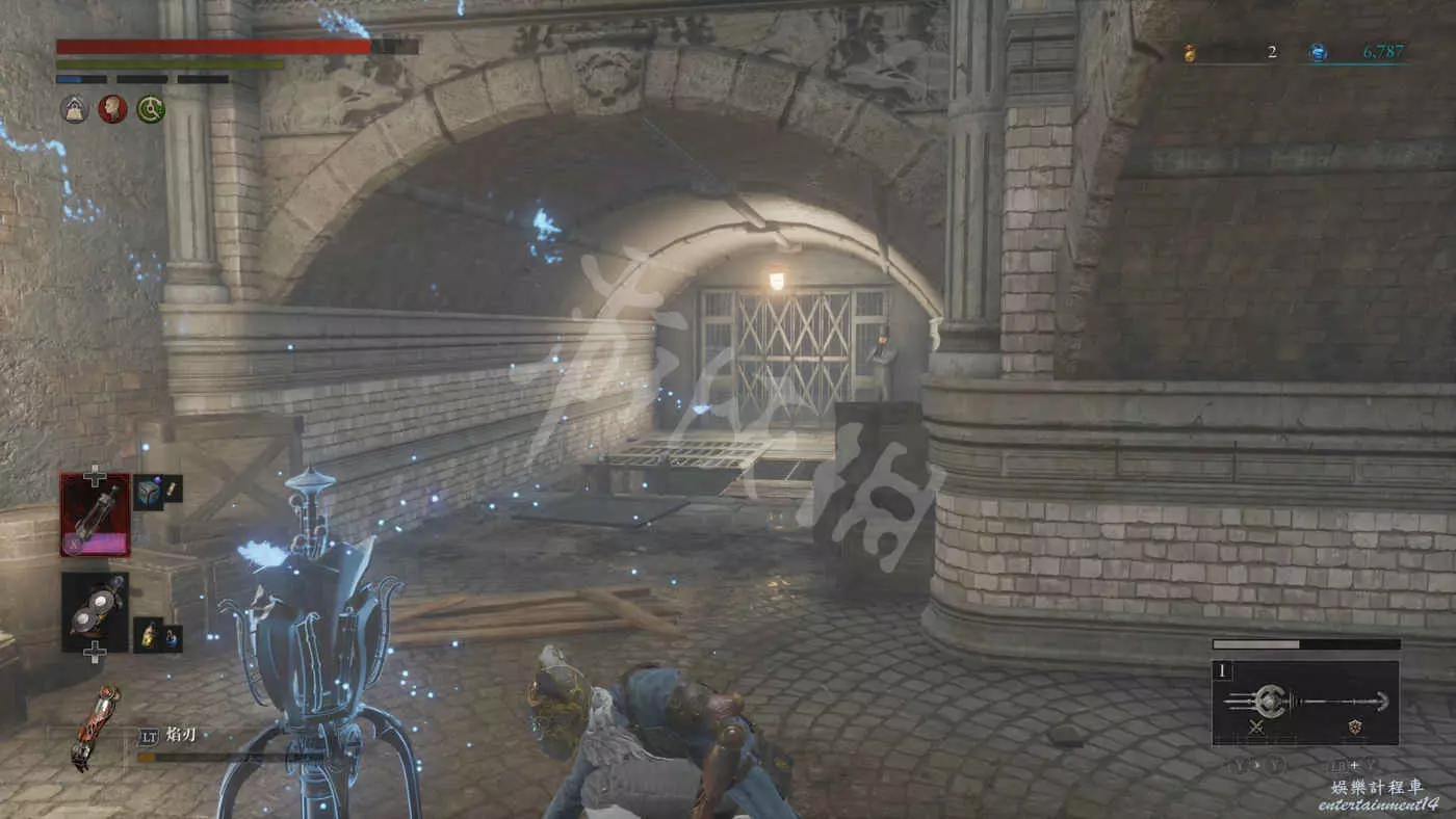 往看起來沒有怪的走廊方向前進,在標誌牌下方的屍體處拿到【洛倫齊尼拱廊二樓鑰匙】。