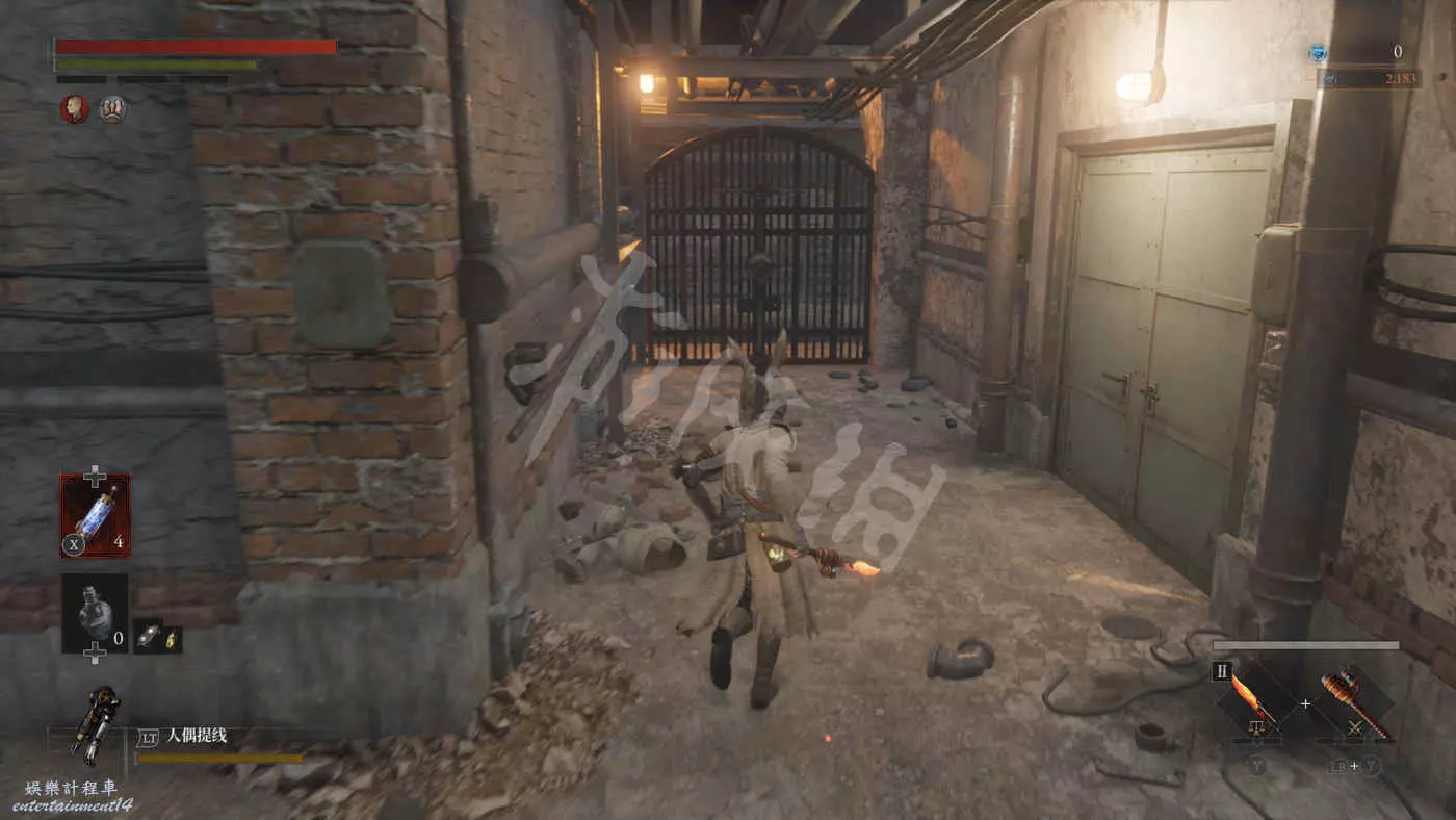 從岔路口右拐後再順著管道走可以離開下水道,來到後巷中,有一扇電門,打開後可以直接回到涵洞處的錨點。