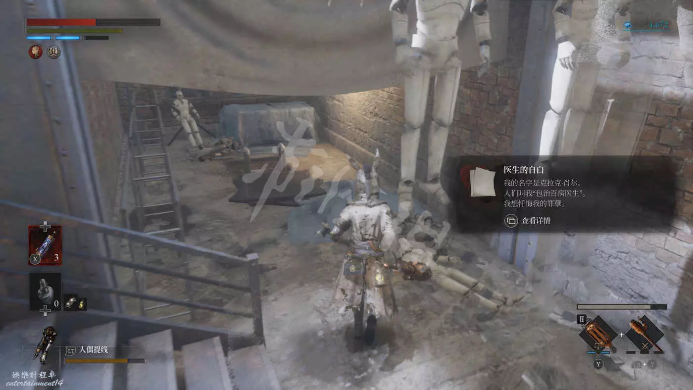 回到劇院舞臺從後臺離開,路上遇到的人偶索敵能力大幅下降,可以安心地背刺之。