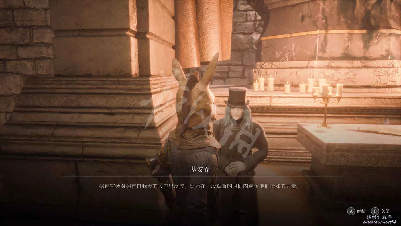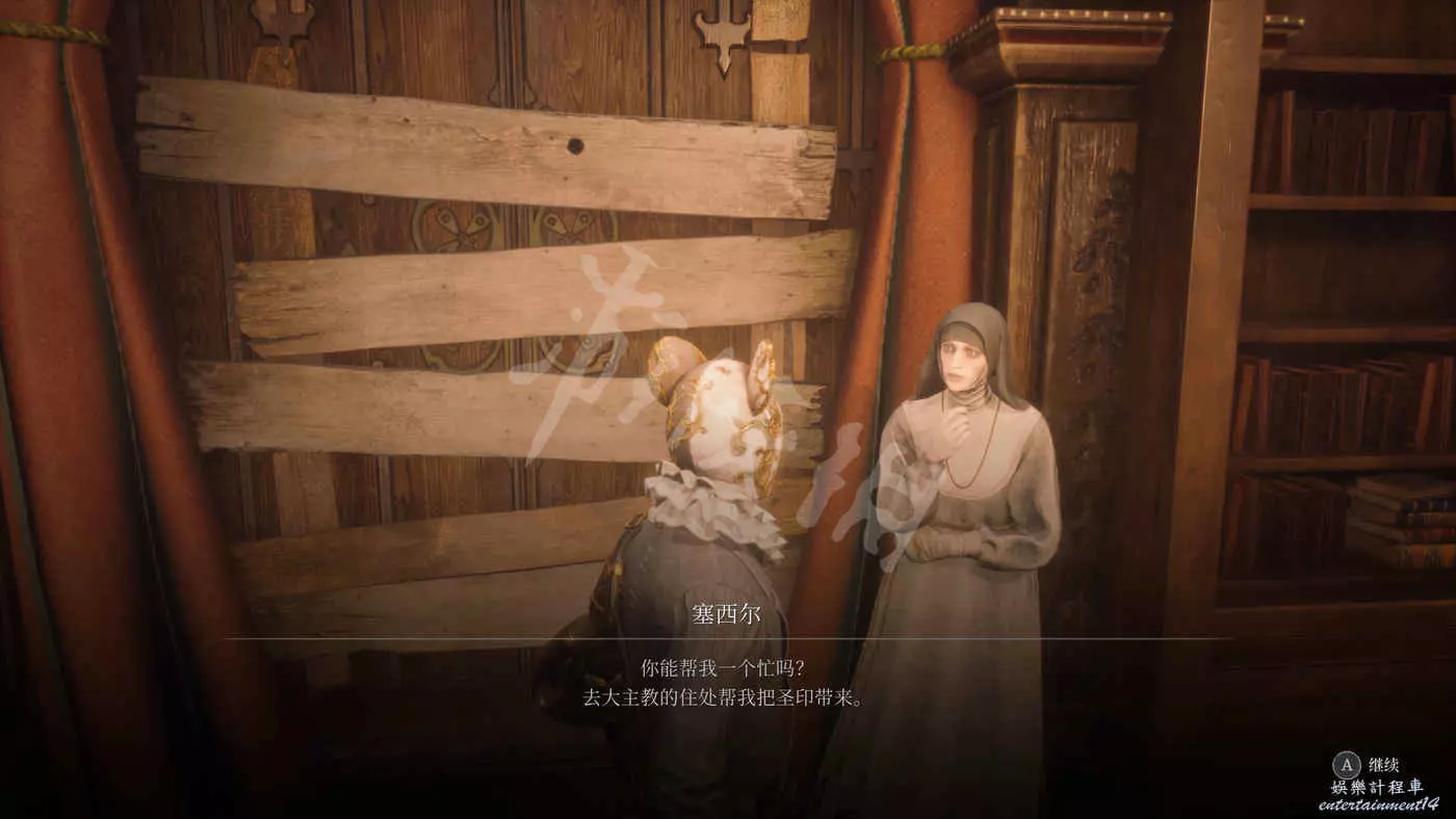 Ps:對話結束會獲得【慈悲聖女像展廳鑰匙】,這個展廳在生態展區那邊,開門後就可以通過消耗金幣果來洗點。