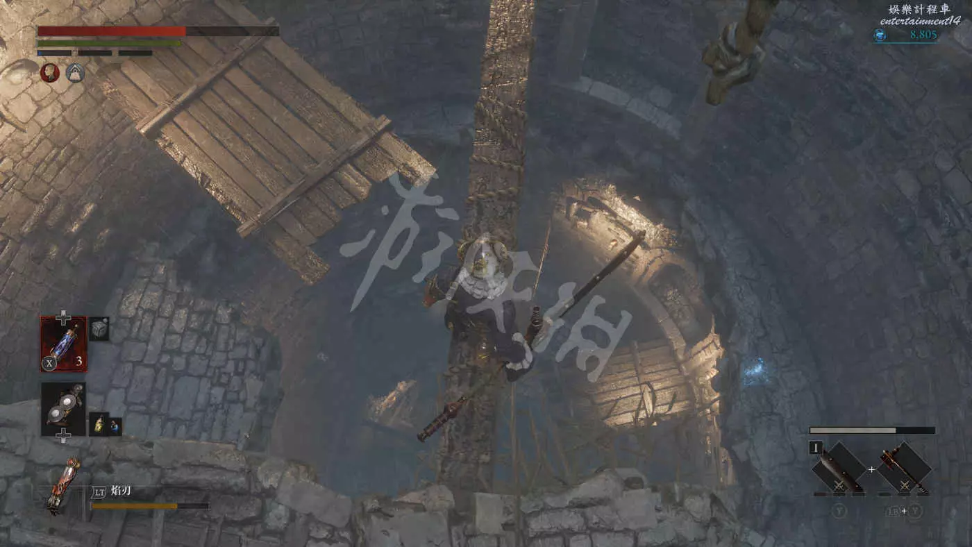 來到室外穿過獨木橋,這裡從左側的梯子下去能解鎖通往極樂大道入口的捷徑。