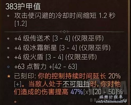 通過懲擊威能 提供40%的乘法控制時間延長 這樣實際最高能達到68%x(1+40%)=95.2%的控制時間延長。換套用到無限法衣 3秒擊暈,就是最高5.85秒左右的眩暈控制