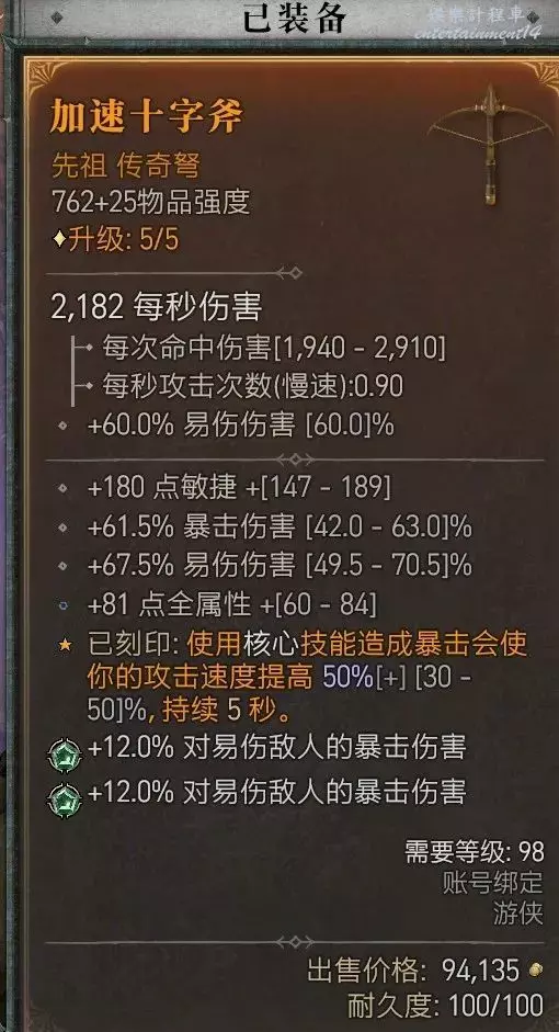 另外從某種意義上來說攻速也是獨立乘區我的BD中攻速會有很多配合所以我的弩上打的是這個