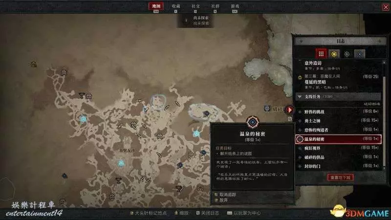 可以在爬梯子上來的平台上找到一起的筆記,觸發溫泉的秘密任務。