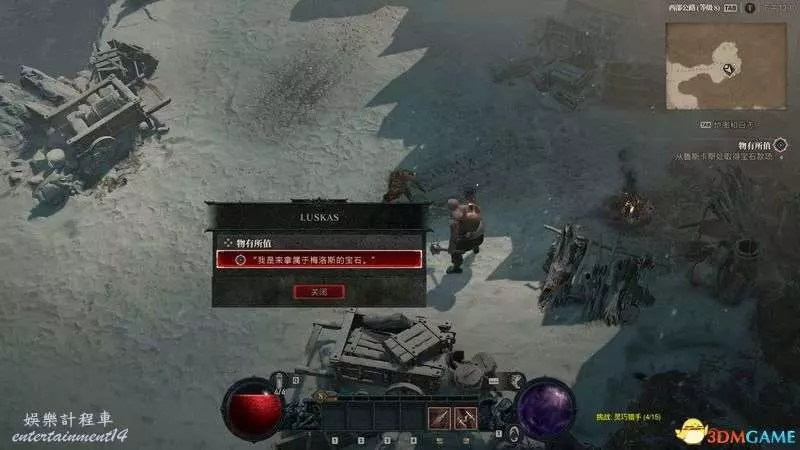 他請英雄前往西北隘口的營地,拿回自己被偷的寶石。