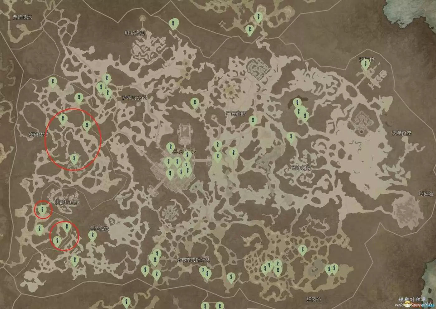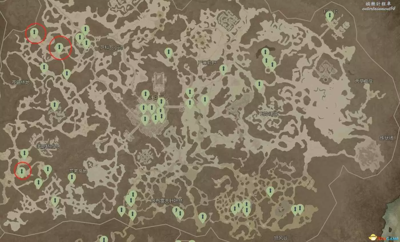 出門在東部澤萊尼低地會遭遇大量食屍鬼,地圖上會有明顯的紅點標誌。