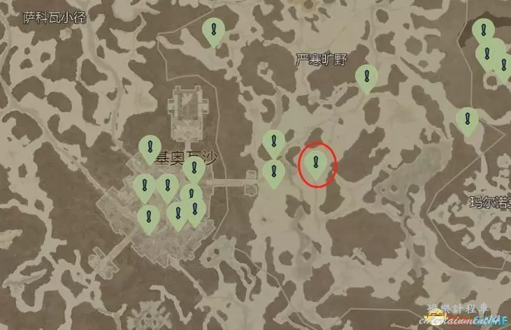 在圖中紅圈位置採礦可能獲得冰封晶簇。